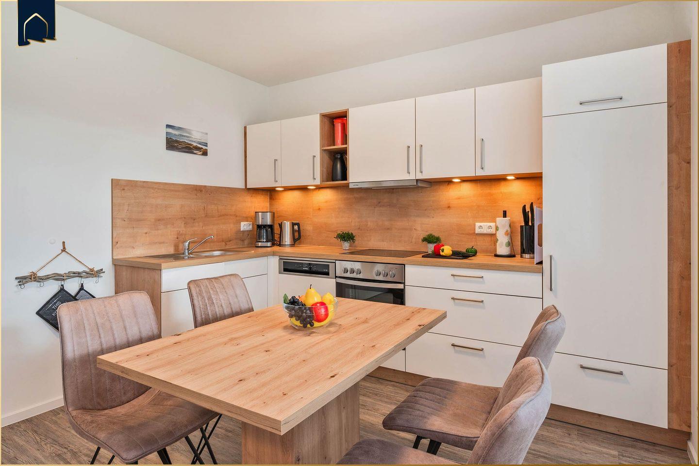 Diese hochwertige Ferienwohnung in idyllischer Dorflage vereint modernes Design mit viel Komfort – perfekt für Paare, Familien oder kleine Gruppen. Auf 87 m² erwarten dich zwei gemütliche Schlafzimmer, zwei moderne Badezimmer mit Dusche sowie eine voll ausgestattete Küche inklusive Backofen, Herd, Spülmaschine und Gefrierfach. Das lichtdurchflutete Wohnzimmer mit Sofaecke, TV und Zugang zur Terrasse bietet beste Erholung nach einem erlebnisreichen Tag.