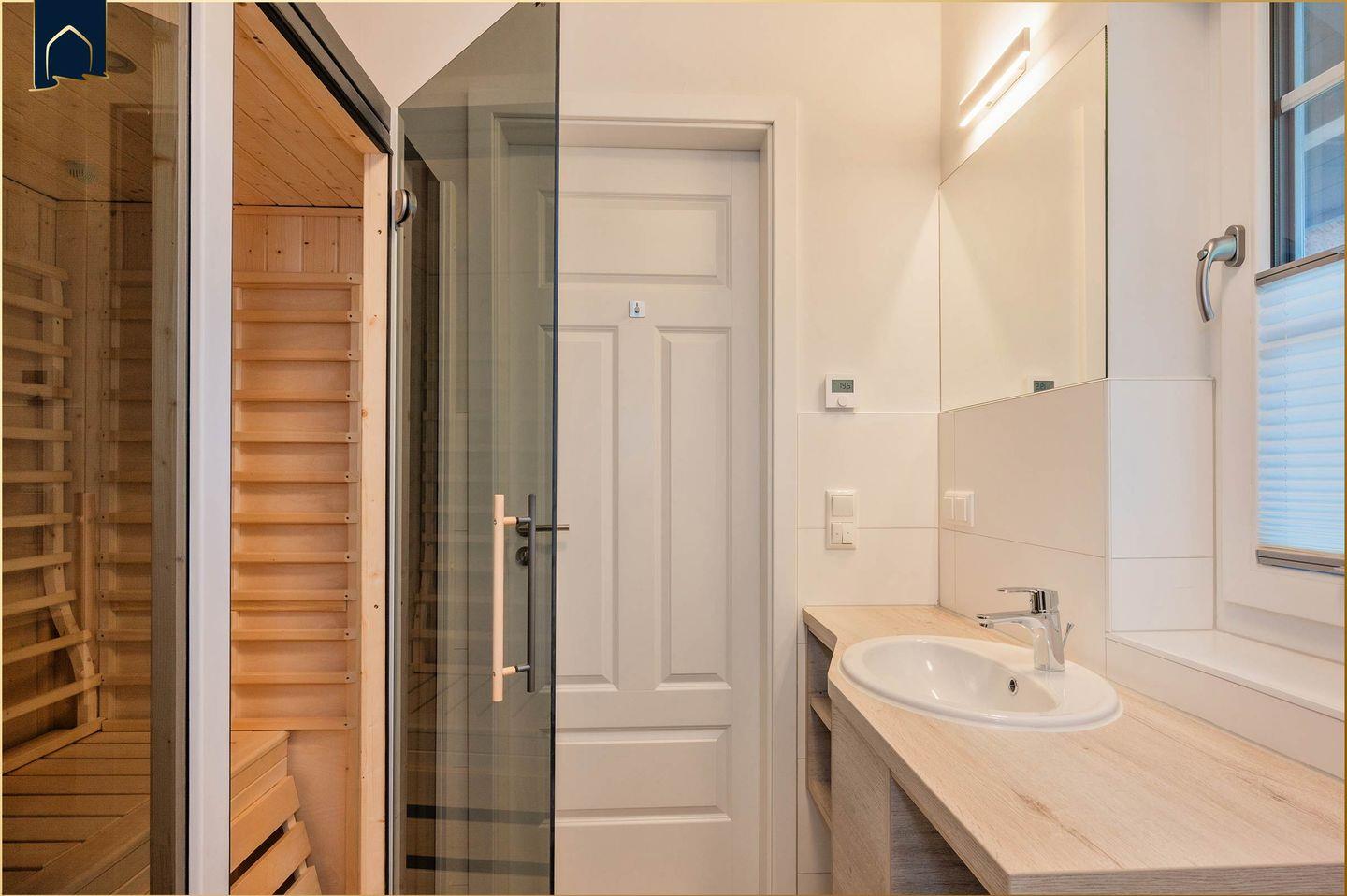Dieses stilvolle, neu gebaute Ferienhaus bietet auf 80 m² Wohnfläche und drei Etagen den perfekten Rückzugsort für bis zu 5 Personen. Eingebettet in eine ruhige, ländliche Umgebung in einem kleinen Dorf, lässt sich hier Entschleunigung wunderbar mit Komfort verbinden. Der lichtdurchflutete Wohnbereich überzeugt mit hochwertiger Einrichtung, Kaminofen und Smart-TV – ideal für gemütliche Abende. Zwei moderne Badezimmer, davon eines mit Badewanne, bieten maximalen Komfort. Besonders entspannend: die integrierte Infrarotkabine.