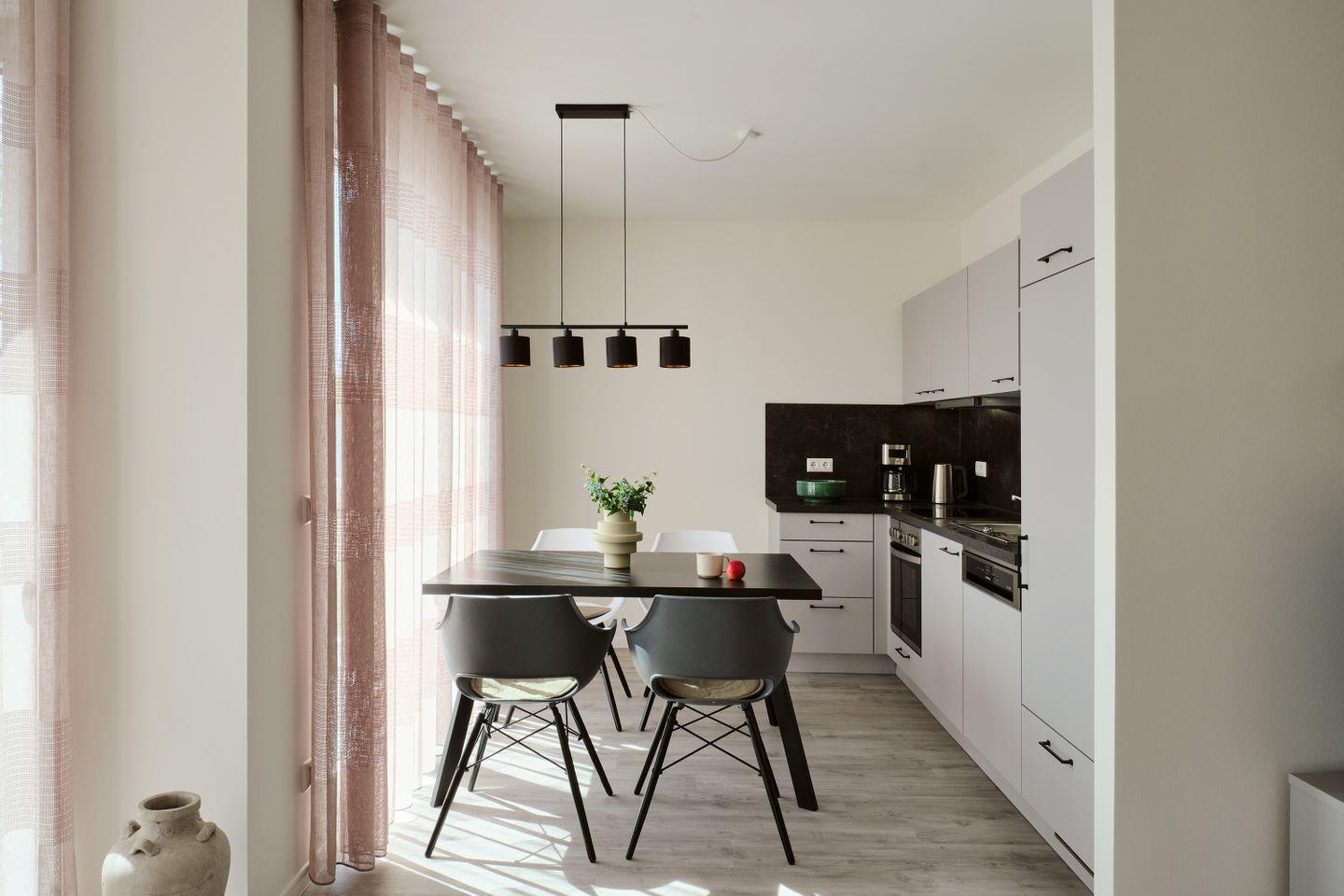 Unser Apartment bietet auf 91 Quadratmetern Platz für bis zu 6 Personen. Es überzeugt durch modernes Design und durchdachte Ausstattung: