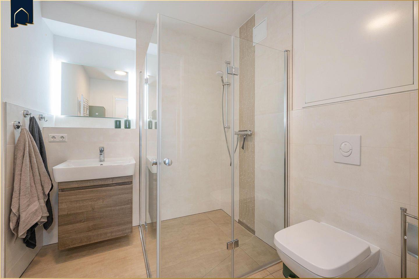 Das Appartement punktet mit einer großen, teilweise überdachten Terrasse, die mit Gartenmöbeln und Sonnenliegen ausgestattet ist. Ein Grill steht für gesellige Abende bereit. Ihr Auto parken Sie bequem auf dem privaten Stellplatz direkt am Haus. Haustiere sind willkommen, und für zusätzlichen Komfort sorgen Waschmaschine, Bügeleisen, Wäscheständer sowie ein Einkaufsservice auf Wunsch. Trotz der ruhigen Lage erreichen Sie Restaurants nach nur 450 m, öffentliche Verkehrsmittel in 350 m Entfernung und auch Einkaufsmöglichkeiten, Golfplätze und Seen sind schnell erreichbar. Dieses neue, 2023 gebaute und 2024 renovierte Appartement ist ideal für alle, die Natur, Komfort und moderne Ausstattung verbinden möchten.