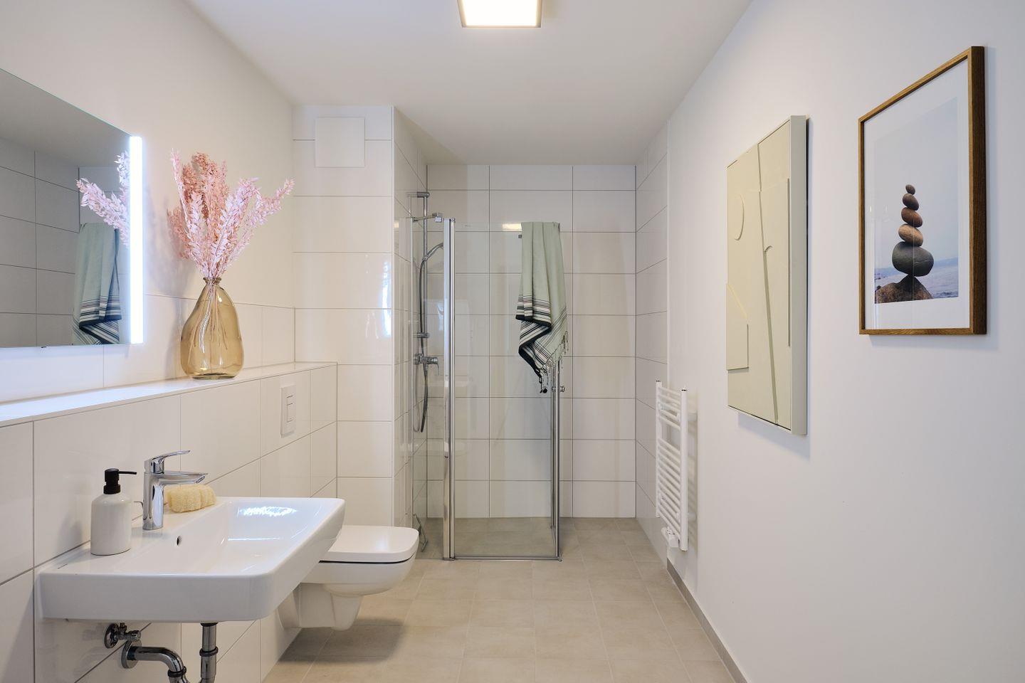 - Ein Badezimmer mit geräumigen Duschen und hochwertigen Armaturen
