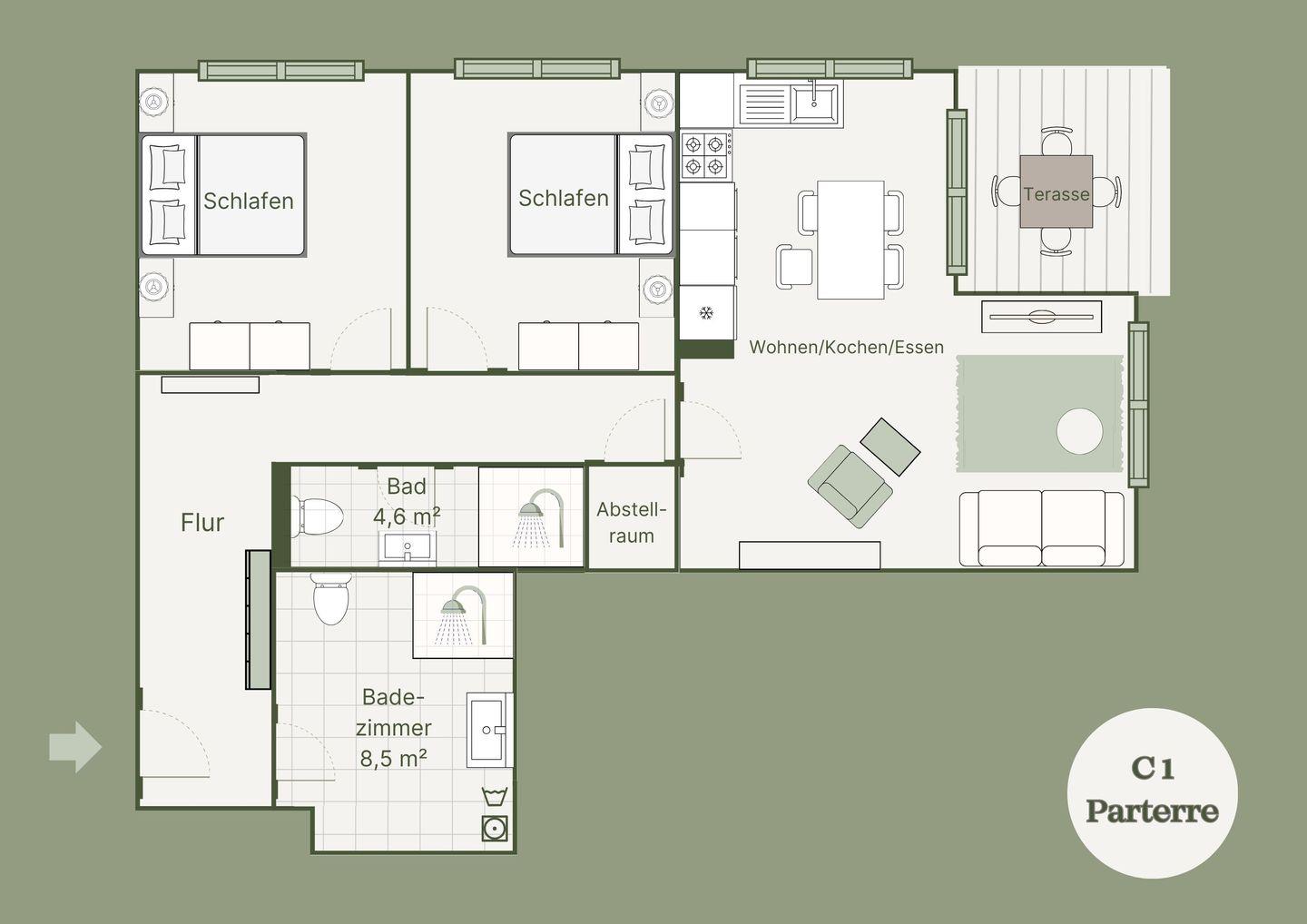- Private Terrasse mit Sitzgelegenheiten