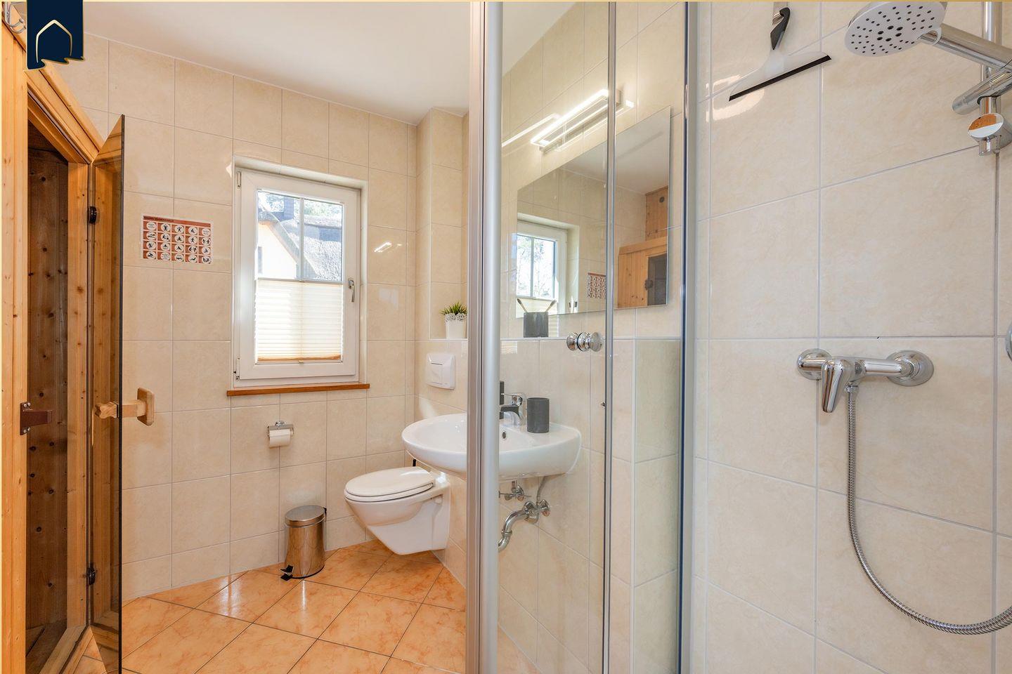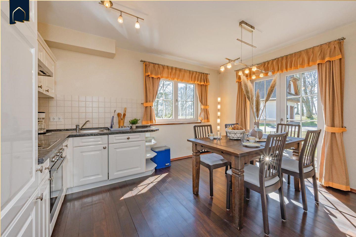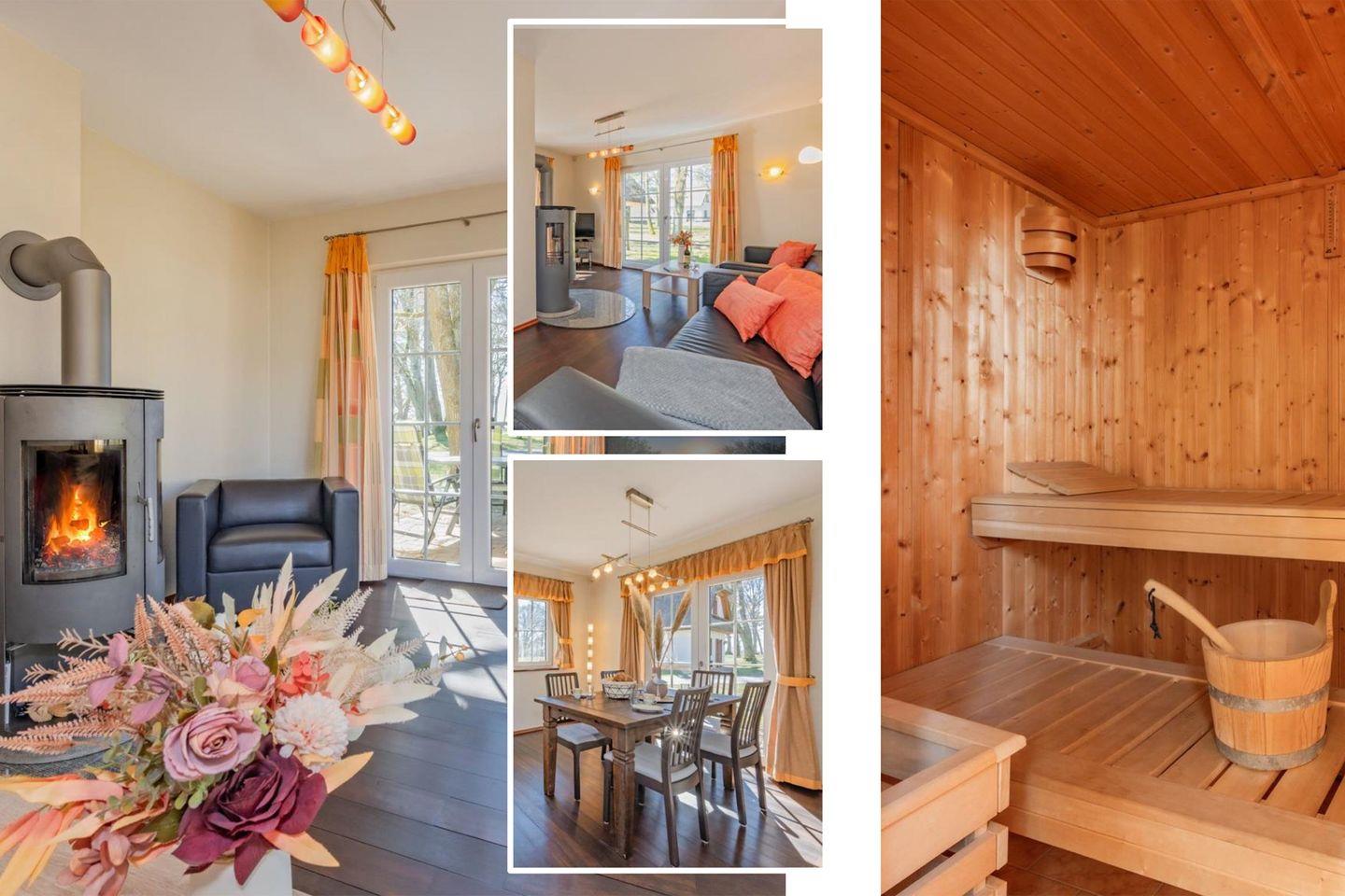 Im Inneren erwartet die Gäste eine stilvoll eingerichtete Unterkunft mit liebevollen Details. Die moderne Küche ist voll ausgestattet mit Herd, Backofen, Kühlschrank mit Gefrierfach, Spülmaschine, Toaster, Kaffeemaschine und Wasserkocher – perfekt für Selbstversorger. Im Esszimmer mit großem Tisch und Gartenblick wird jede Mahlzeit zum Genuss. Der Wohnbereich überzeugt mit Kaminofen, bequemer Sofaecke, TV und kostenlosem WLAN. Für Entspannung nach langen Ausflügen sorgt die hauseigene Sauna – zur alleinigen Nutzung gegen Gebühren. Zwei moderne Badezimmer (1x mit Dusche, 1x mit Badewanne) sowie ein zusätzliches Gäste-WC runden das Angebot ab.