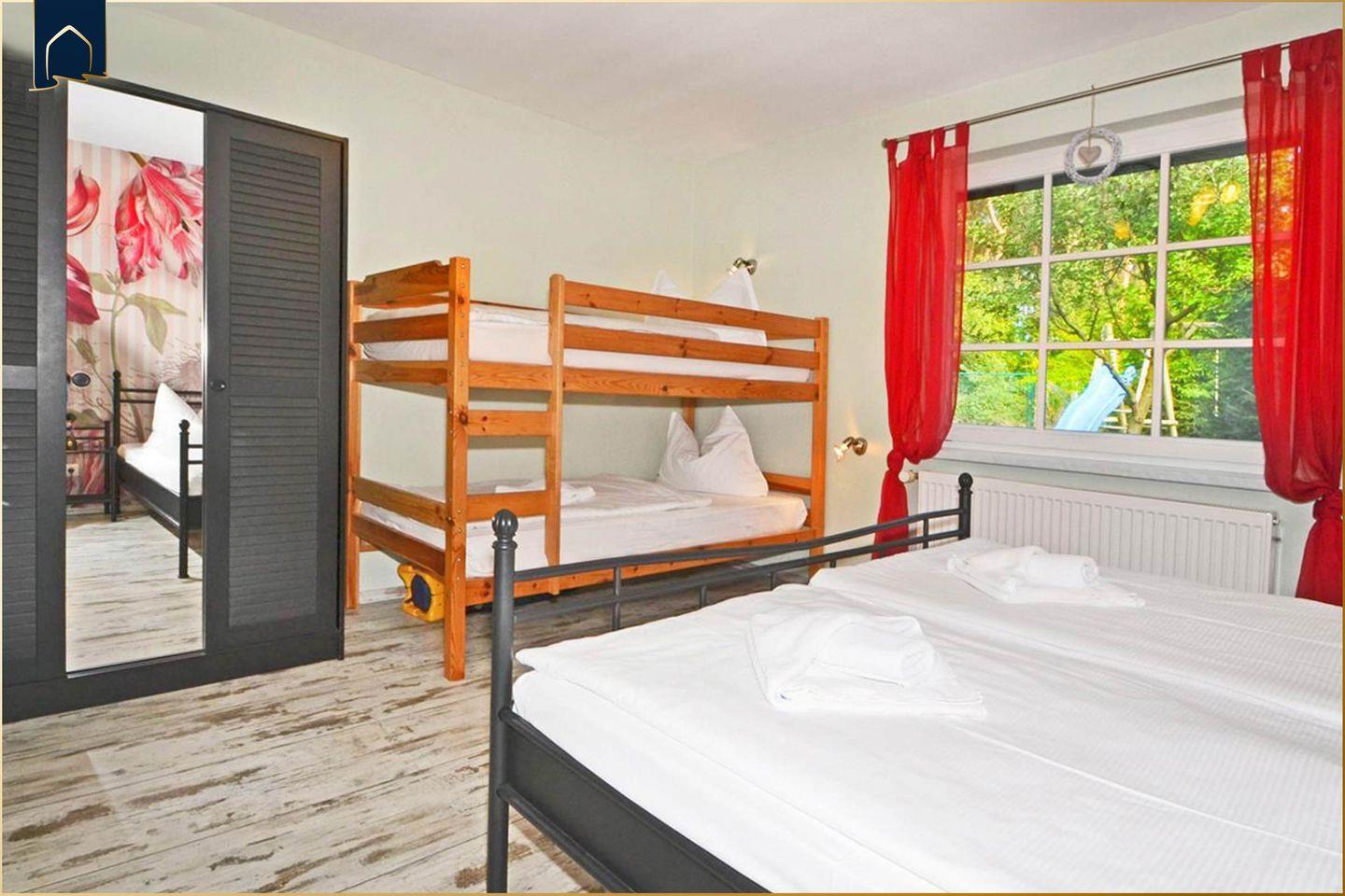 Im großzügigen Garten mit Terrasse, Liegewiese, Gartenmöbeln und Grillplatz können Sie sonnige Stunden im Freien genießen. Für Kinder stehen eine Rutsche, ein Sandkasten und eine Schaukel zur Verfügung. Das Grundstück ist komplett umzäunt – ideal, wenn Sie mit Hund reisen. Zwei private Parkplätze direkt am Haus sorgen für eine bequeme Anreise. In der Umgebung bieten sich zahlreiche Freizeitmöglichkeiten: Ob Spaziergänge im Wald, ein Ausflug zum nahegelegenen See (4?km), ein Badetag am Strand (8?km) oder ein Abendessen im Restaurant (4?km) – hier gestalten Sie Ihren Urlaub ganz nach Wunsch.