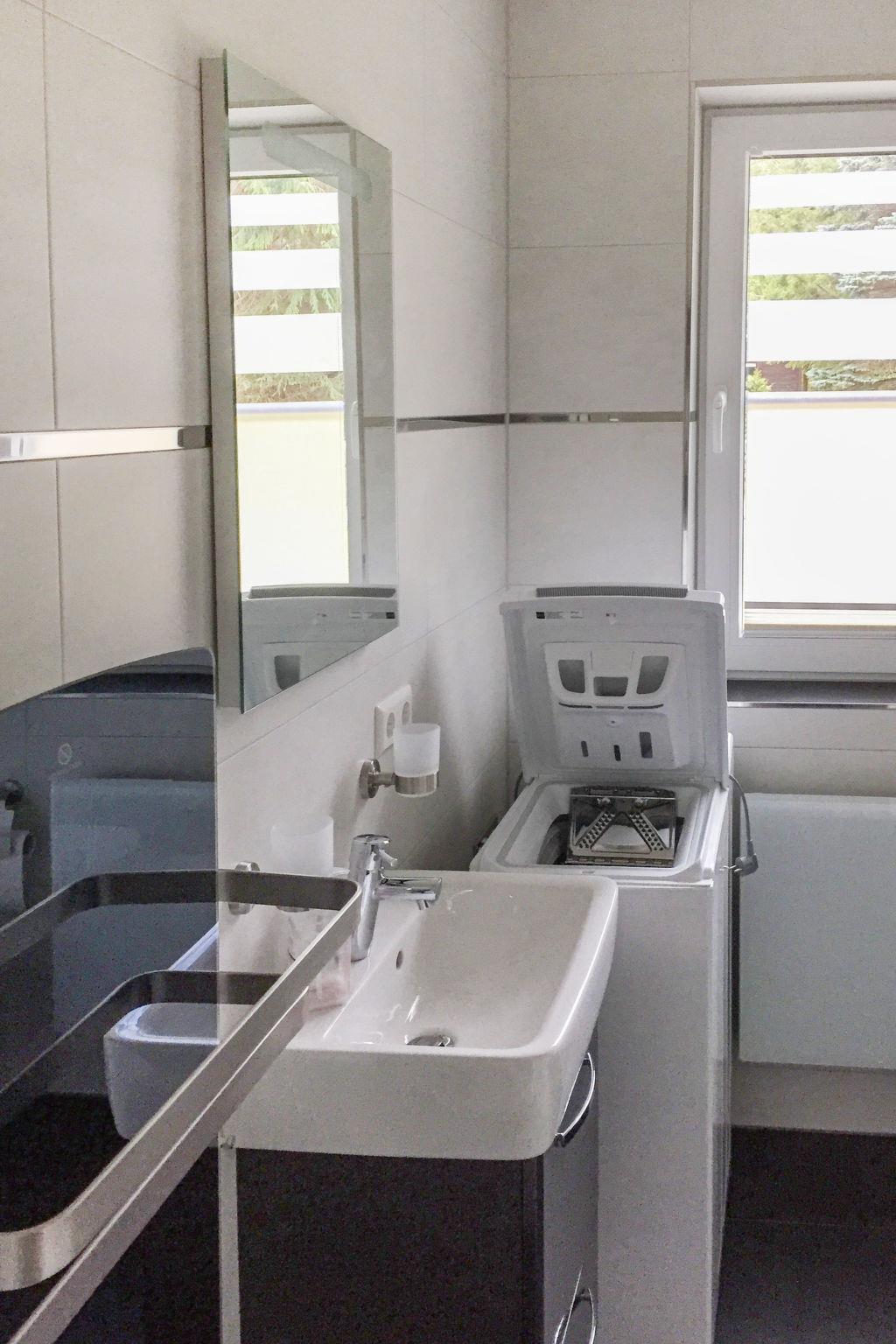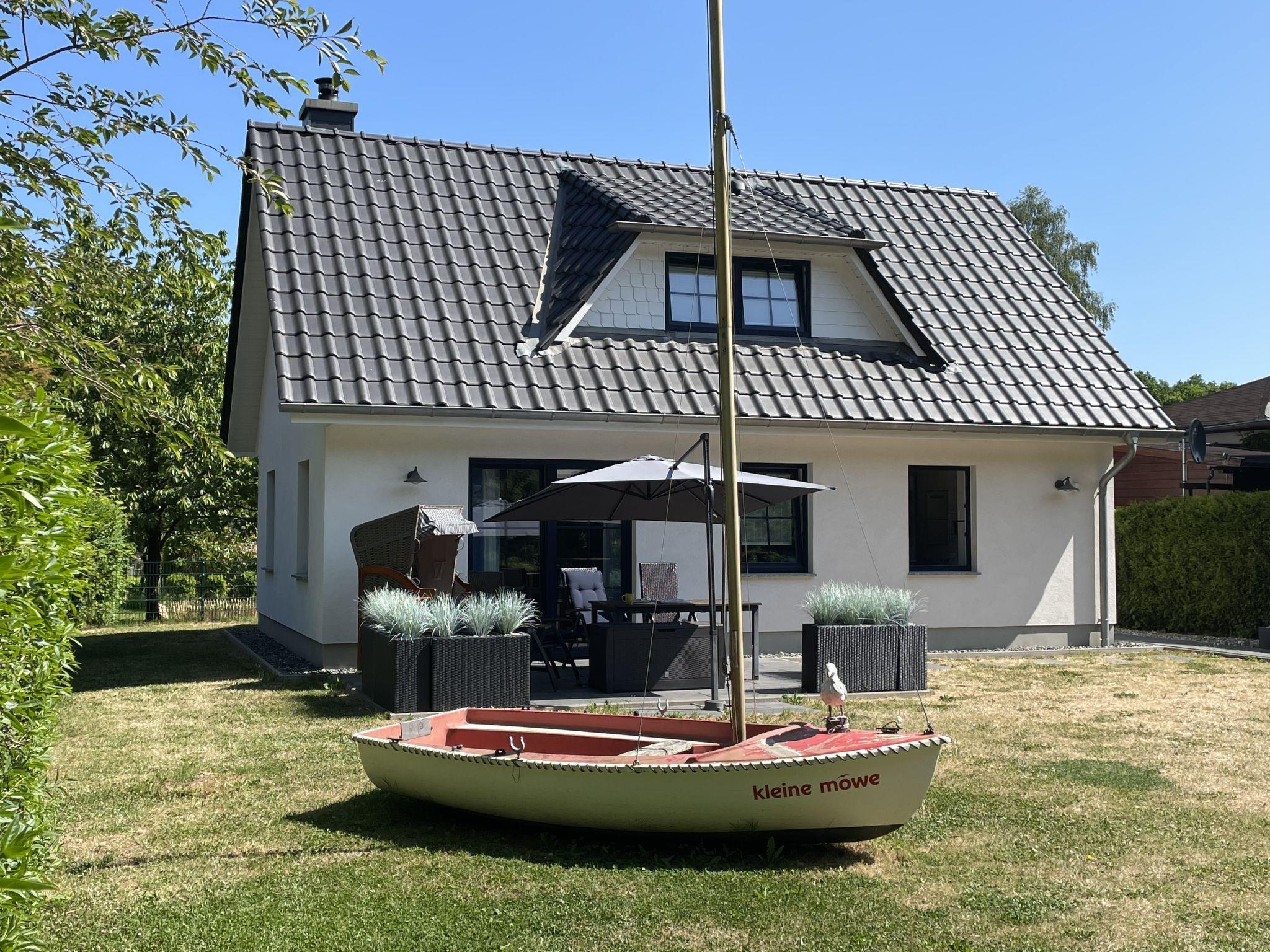 Modern single-family house "Kleine Möwe", surrounded by trees, meadows and fields. In the district of Neu Süllitz, on the outskirts, 3.8 km from the centre of Binz, 6 km from the centre of Zirkow, in a quiet, sunny position, 50 m from the edge of the forest, 2.5 km from the sea, 3.5 km from the lake, 2.5 km from the beach. Private: property 600 m2 with lawn. In the house: central heating system. Parking (for 2 cars) at 50 m. Shop 2 km, grocery 2 km, supermarket 2 km, shopping centre 2 km, restaurant 2 km, bar 2 km, bakery 2 km, café 2 km, pedestrian zone 2 km, bicycle rental 2 km, bus stop 500 m, railway station "Binz" 2 km, sandy beach "Binz" 2.5 km, indoor swimming pool 2 km, public bathing area 2 km. Nearby attractions: Jagdschloss Granitz 1.5 km, Nationalparkzentrum Königsstuhl 32 km, Kap Arkona 48 km. Well-known lakes can easily be reached: Schmachter See 3.5 km. Please note: car recommended. There is an unlocked drainless Sewage collection pit on the property.