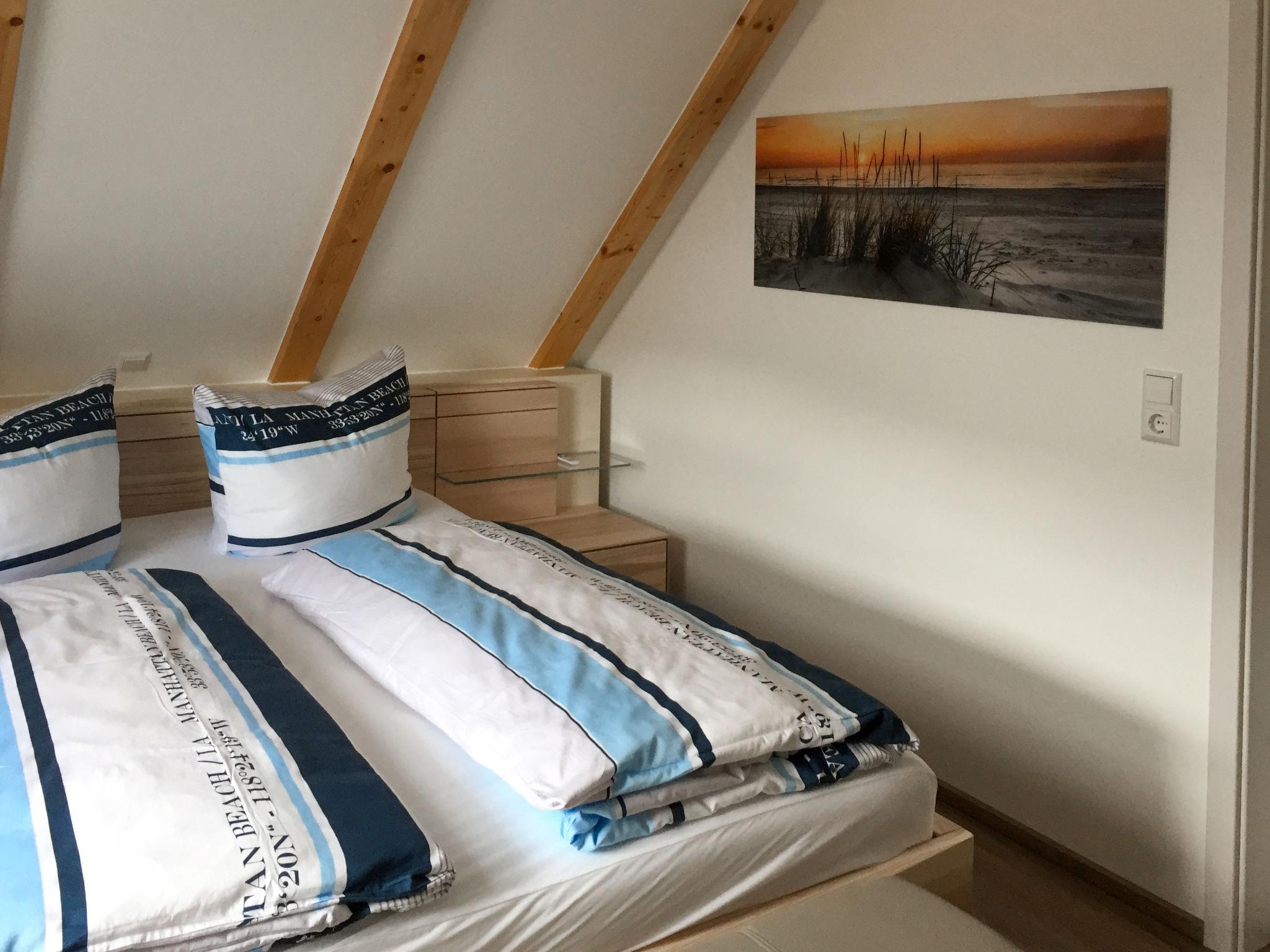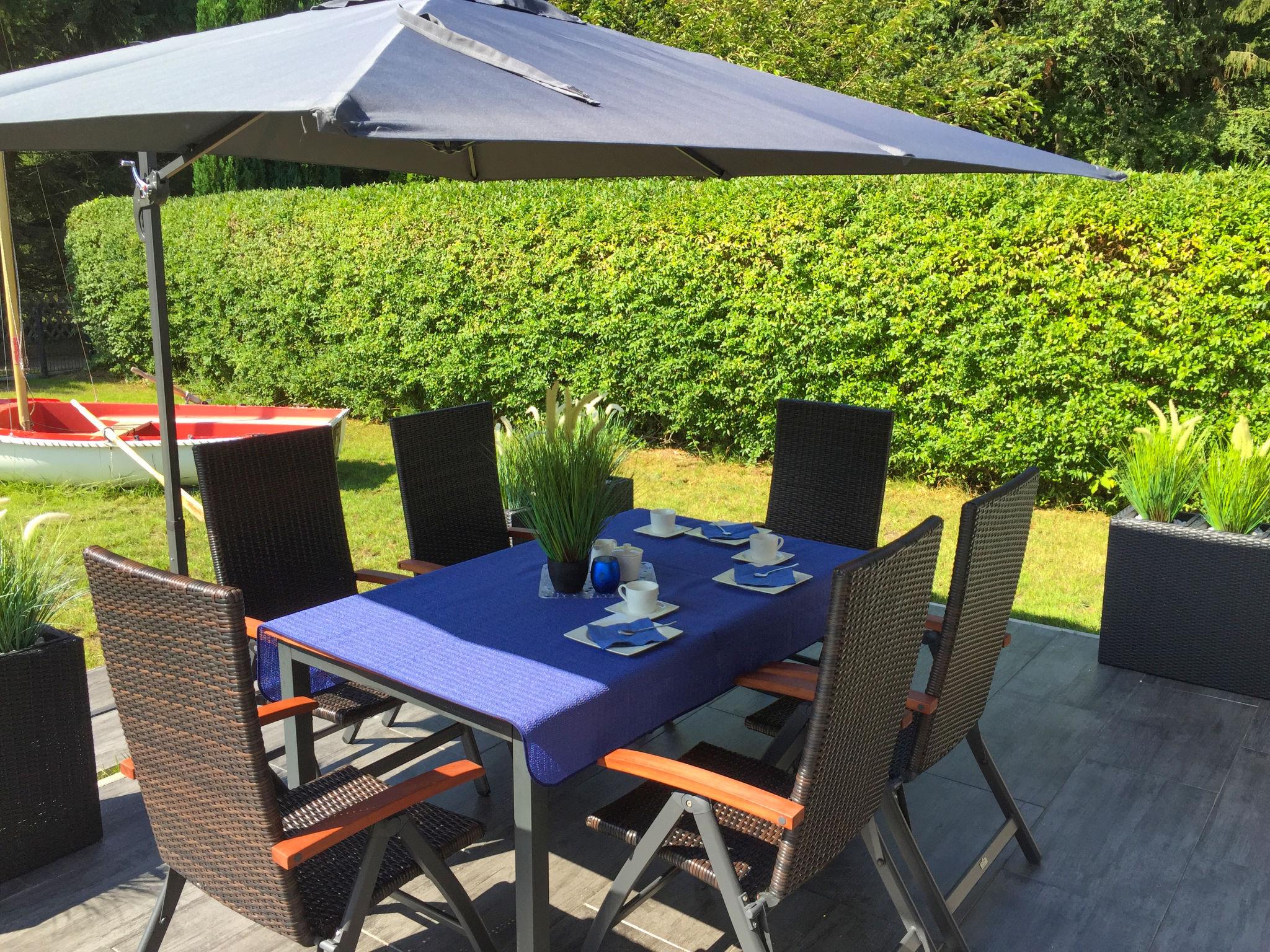 3-room house 80 m2 on 2 levels, on the ground floor. Cosy furnishings: living room 30 m2 with Scandinavian wood stove and satellite TV (flat screen), CD-player and hi-fi system. Exit to the garden, to the terrace. Open kitchen 10 m2 (oven, dishwasher, 4 ceramic glass hob hotplates, microwave, grill, electric coffee machine) with dining table. Shower/WC. Upper floor: (spiral staircase), 2 rooms 18 m2, with sloping ceilings, each room with 1 double bed (180 cm, length 200 cm). Shower/WC. Terrace 20 m2. Terrace furniture, barbecue (portable). Facilities: washing machine, telephone (extra), hair dryer, logs (extra). Internet (WiFi, free). Please note: not suitable for small children. Non-smoking house. Smoke alarm, fire extinguisher.