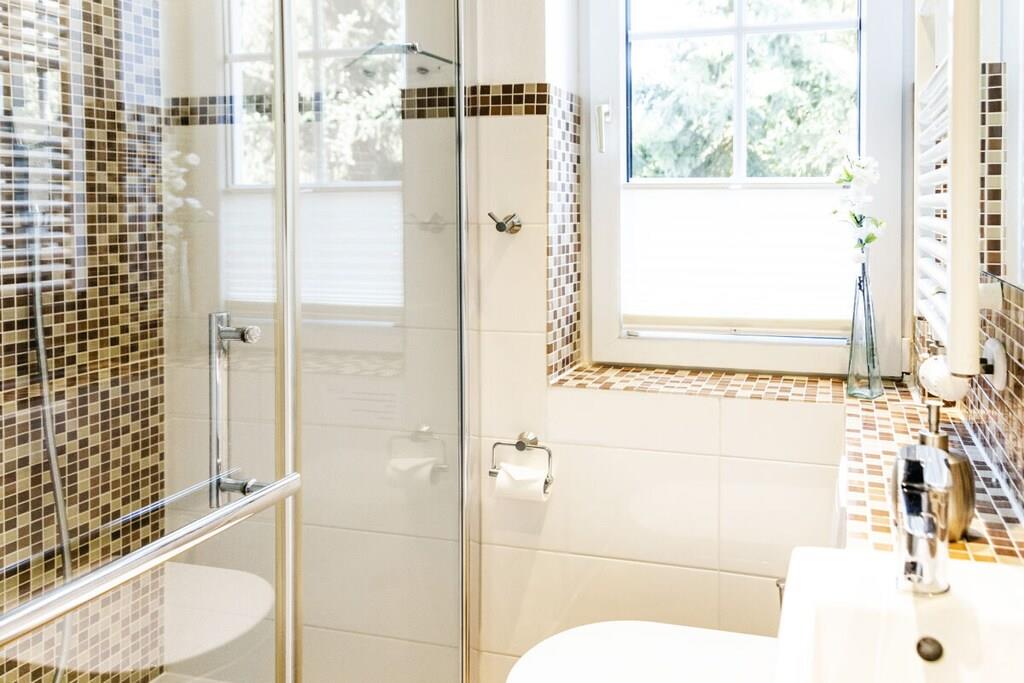 Direkt bei Binz in einem kleinen Reetdachdorf (idyllisch zwischen Schmachter See und Stresower Bucht) gelegen, nur 3,5 km bis Binz. Das Ferienhaus hat einen ausreichend großen Gartenbereich. Es stehen 2 PKW Stellplätze im Carport zur Verfügung. Das Landhaus Wildrose hat 5 Schlafzimmer, 4 moderne Bäder, eine gut eingerichtete Küchen und Wohnbereiche von bis zu 80 m² und erfüllen damit alle Ansprüche für den anspruchsvollen Urlaub. Ihnen stehen LED-Flachbild-TV´s und DVD Player zur Verfügung. Genießen Sie den Komfort der modernen Tageslicht-Bäder mit Ganzglasduschen und geöltem Eichenparkett auf Fußbodenheizung. Das Ferienhaus verfügt über Balkon bzw. Terrasse. Bettwäsche, Handtücher, Waschmaschine und Trockner sind im Mietpreis enthalten. Es fällt keine zusätzliche Kurtaxe an, die normalerweise EURO 2,60 je Nacht und Person beträgt!! Es gibt auf Rügen nur wenige 5-Sterne Landhäuser und im Binzer Raum keine weiteren Häuser unter Reet und mit einer 5-Sterne-Klassifizierung des DTV (deutscher Tourismusverband), die Sie a l l e i n für sich und Ihre Familie in der schönsten Zeit des Jahres bewohnen können.