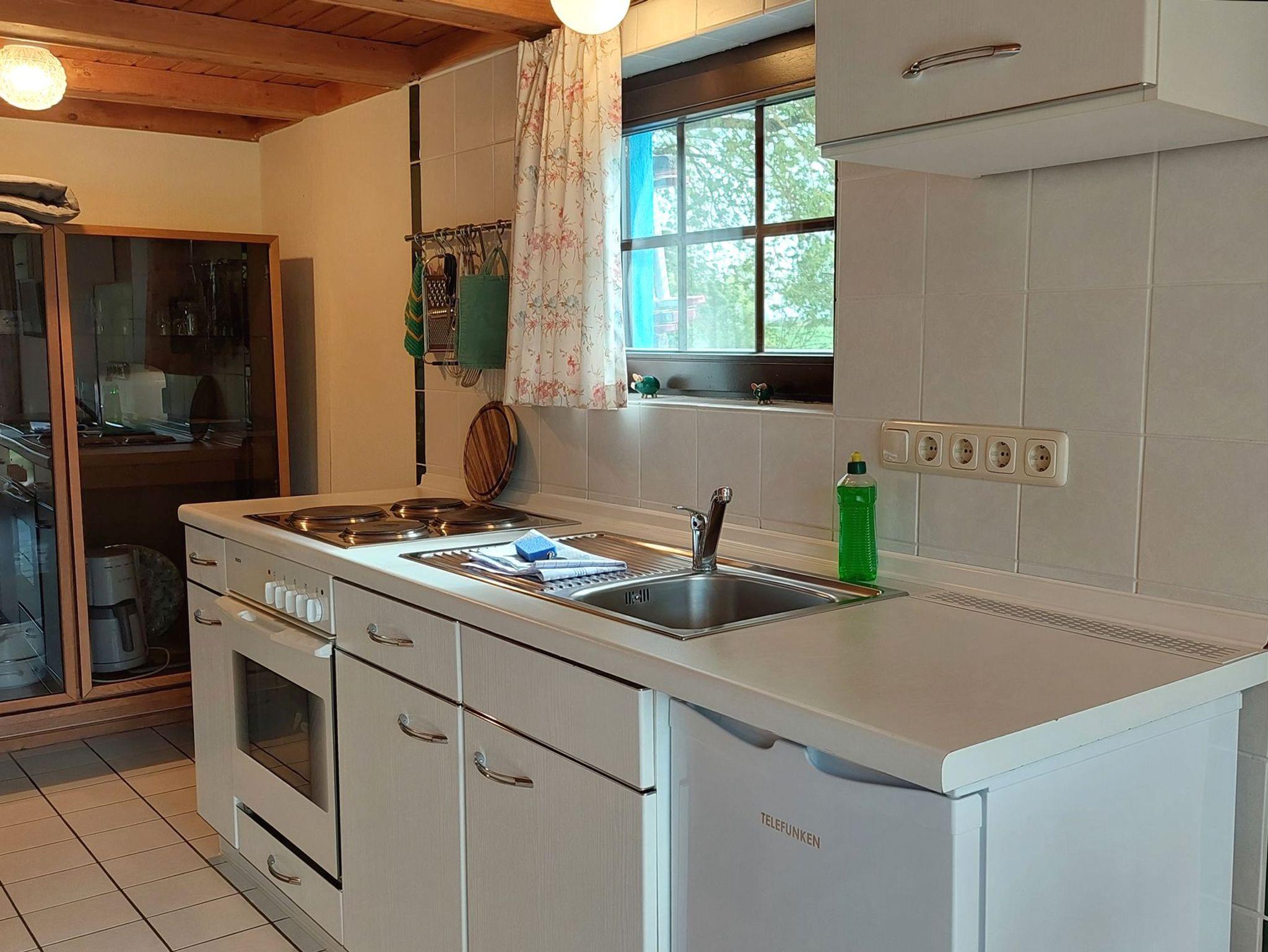Ihr ca. 50 qm großes freistehendes reetgedecktes Bauernhaus 8RB1 (Nichtraucher) mit typisch niedrigen Raumhöhen ist im Maisonettenstil über 2 Etagen erbaut und mit einer offenen Treppe verbunden. Vor dem Wohnbereich im Erdgeschoss befindet sich eine schöne Südterrasse mit grünem Ausblick auf den eigenen Gartenteil. Im gemütlichen Wohnbereich mit einer Sitzgruppe und einem großem Flatscreen-TV finden Sie neben der angrenzenden Wohnküche auch einen Essbereich. Im Küchenbereich erwartet Sie ein einen Backofen, Kühlschrank, eine Kaffeemaschine, Wasserkocher sowie weitere nützliche Küchenhelfer. Ebenfalls im Erdgeschoss befindet sich das Badezimmer mit Dusche, Waschtisch und WC. Im Obergeschoss finden Sie den Schlafbereich mit Doppelbett und Kleiderschrank. Auch ein Kinderreisebett würde dort Platz finden. Durch den umzäunten eigenen Garten und die grüne Umgebung ist diese Wohnung perfekt für Kinder und Haustiere geeignet.