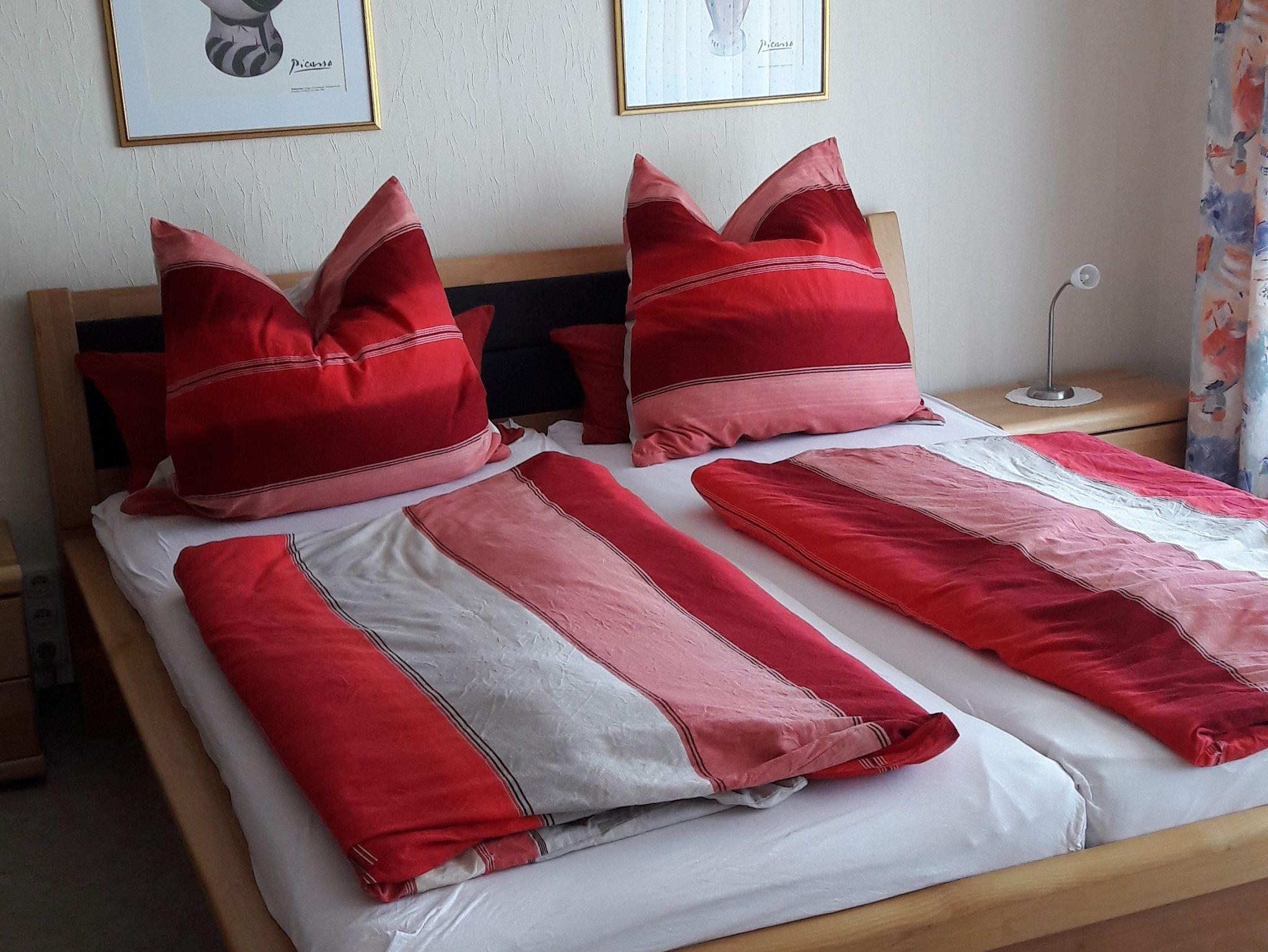 Die Ferienwohnung (79qm) ist bestens geeignet für 1 bis 4 Personen. Das Schlafzimmer ist ausgestattet mit einem Doppelbett. Im geräumigen Wohnzimmer können Sie es sich auf der Couch mit TV gemütlich machen. Auch ein Kamin lädt zu gemütlichen Stunden ein. Vom Wohnzimmer aus gelangen Sie zum Balkon, auf dem Sie entspannt den Tag ausklingen lassen können. Die voll ausgestattete Küche mit Herd, Backofen, Kühlschrank, Geschirrspüler, Kaffeemaschine, Wasserkocher und Essecke lässt keine Wünsche offen. Das Badezimmer mit Badewanne, Dusche und Fön rundet das Gesamtbild ab. Das WC ist separat. Handtücher und Bettwäsche sind vorhanden. WLAN ist kostenlos.