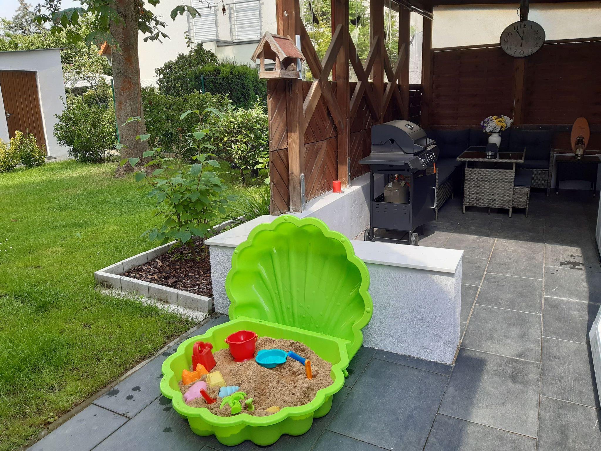Unsere 90qm große Ferienwohnung (Doppelhaushälfte) bietet Platz für bis zu 6 Personen und erwartet Sie mit einem schönen Garten, großem Balkon, überdachter Terrasse mit Grillplatz und kostenfreiem WLAN.
