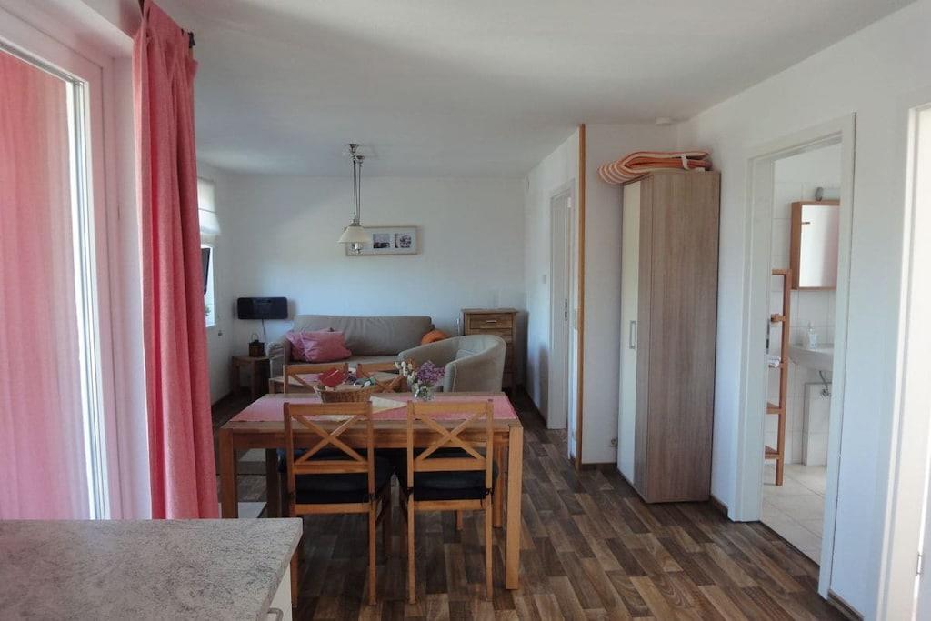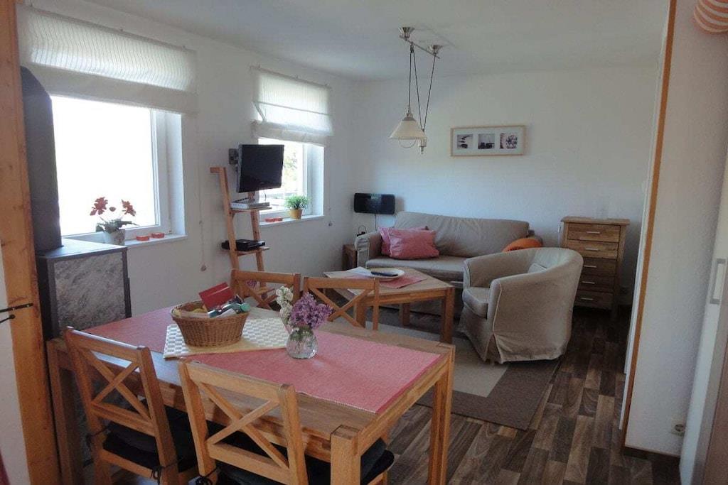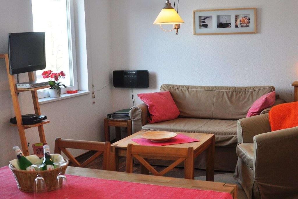 Vi byder dig varmt velkommen til ferielejligheden på PONTUS feriekompleks, beliggende i naturparadiset Mecklenburgs søendistrikt! Lejligheden er komfortabelt og hyggeligt møbleret, har en pejs og er ideel til to personer. En stor sovesofa er tilgængelig i stuen til en tredje eller fjerde gæst. Din hund er også velkommen i denne lejlighed (efter anmodning). Vores lejlighed har en stue/spisestue, et åbent køkken med pejs, et soveværelse med en dobbeltseng, et badeværelse med bruser og toilet samt en balkon. Herfra kan du nyde solnedgangen. Der er myggenet. Komplekset blev bygget i 2008-2009 og renoveret i 2017.