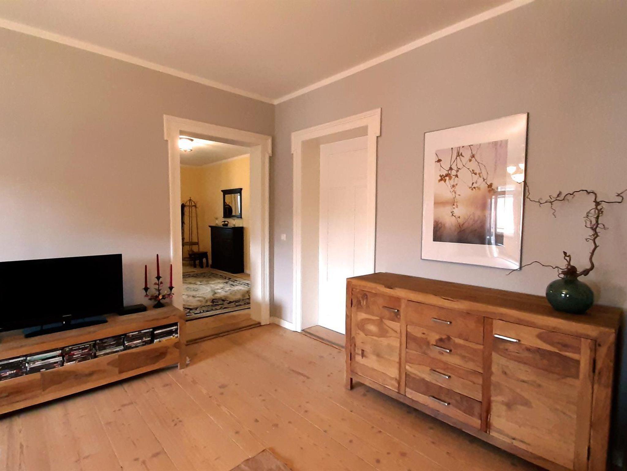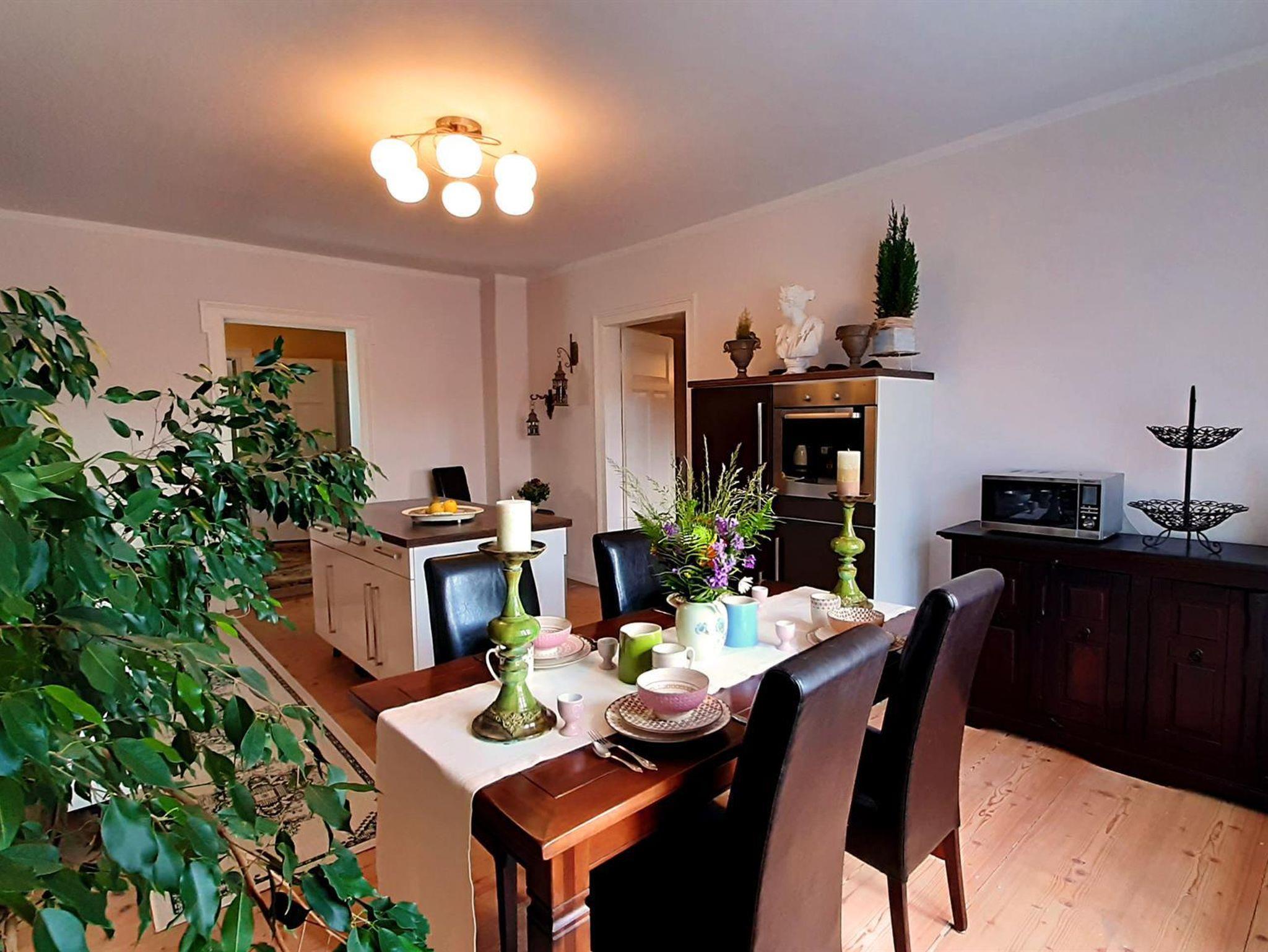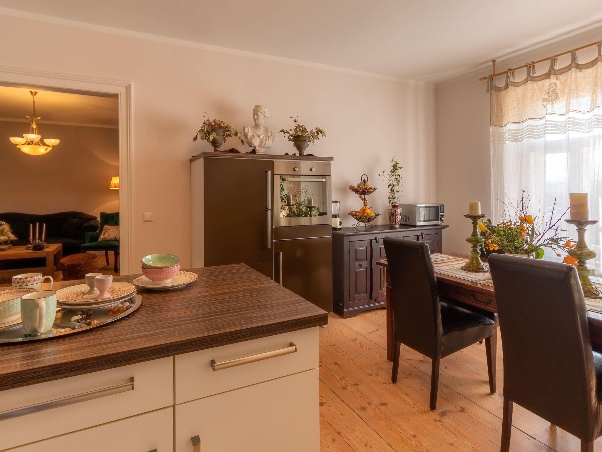 Wohltuend weiträumig und gemütlich präsentiert sich die komfortabel ausgestattete Wohnung. Sie verfügt über 2 große Schlafzimmer, 1 geräumiges Bad mit Dusche, Badewanne und einem separatem WC, sowie einer komplett ausgestatteten Küche mit Essplatz. An das Wohnzimmer, mit seinem antiken Schmuckofen grenzt die Veranda an, die mit einem atemberaubenden Ausblick auf das Zittauer Gebirge besticht.
