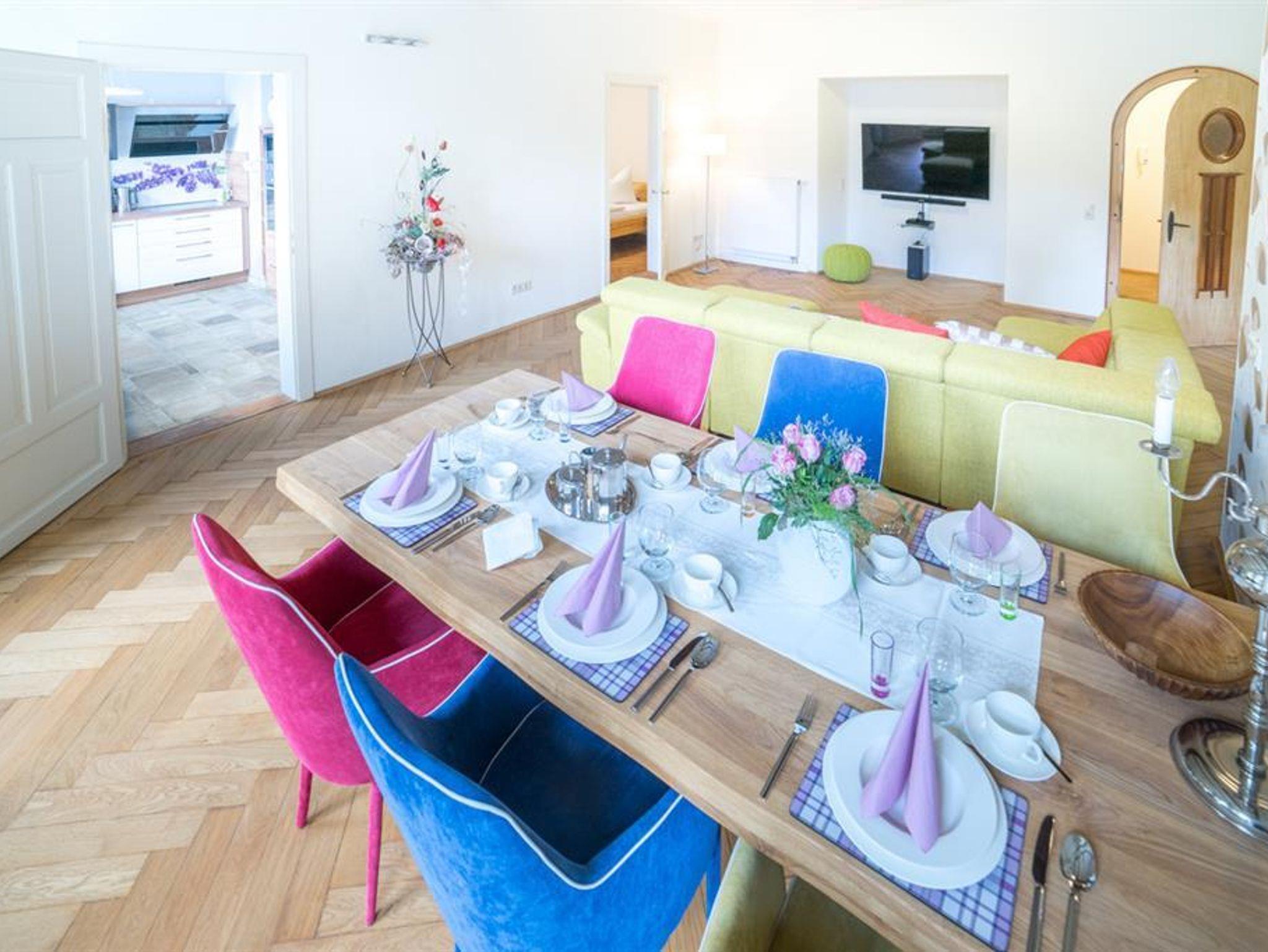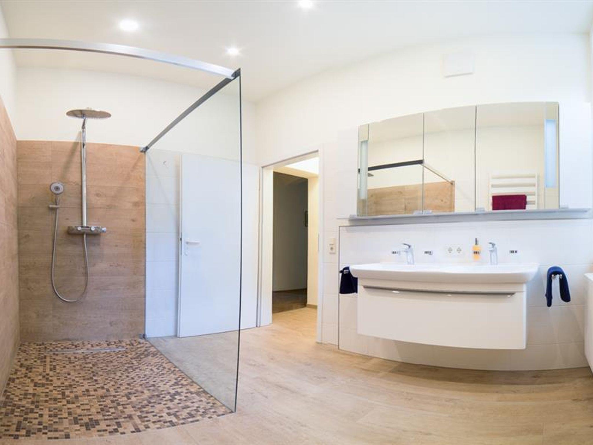 Die Ausstattung der Ferienwohnung ist großzügig, sodass sich 6 Personen wohlfühlen können (großer Fernseher, großer Tisch, großes Sofa, große Dusche). Es ist auch ausreichend Geschirr und Besteck vorhanden. Aufbettungen sind auf Anfrage möglich. Eine Waschmaschine steht Ihnen zur Verfügung.