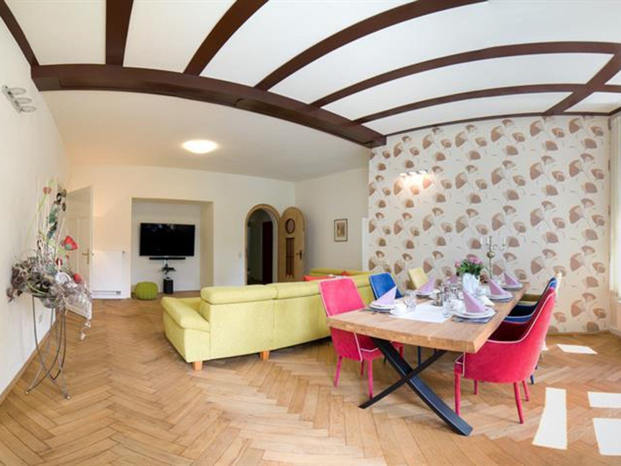 Die sehr geräumige Ferienwohnung befindet sich in zentraler Lage in Zittau. Sie bietet viel Komfort und ist sehr großzügig ausgestattet. Die Wohnung verfügt über 3 Schlafzimmer, 2 Toiletten, ein großes Bad, eine geräumige Küche, einen großen Wohn- und Essbereich sowie einen Flur. Die Zimmer sind praktisch und gehoben eingerichtet, es fehlt an nichts. Die Böden sind mit Parkett oder Fliesen belegt. Die Wohnung ist für Allergiker geeignet. Fahrräder können eingeschlossen werden, Parkplätze sind hinter dem Haus vorhanden. Haustiere sind erlaubt (10,00 € pro Nacht).