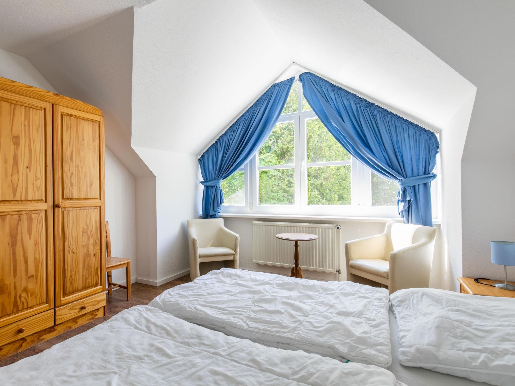 4-room semi-detached house 125 m2 on 3 levels. Practical and cosy furnishings: living/dining room with Scandinavian wood stove, satellite TV, radio and CD-player. Exit to the terrace. Kitchen (4 hot plates, oven, dishwasher, kettle, electric coffee machine). Sep. WC. Upper floor: 1 room with sloping ceilings with 1 double bed. Exit to the balcony. 1 room with sloping ceilings with 2 beds. Walk-through room with sloping ceilings with 1 double sofabed. Bath/shower/WC. Gas heating. 2nd upper floor: (ladder) open gallery, ceiling height 160 cm with 2 sleeping facilities. Carpet. Small balcony, terrace, garden, lawn 200 m2. Terrace furniture. Facilities: children's high chair, baby cot, logs (extra). Parking (2 cars). Please note: non-smoking house. Maximum 1 pet/ dog allowed. Smoke alarm. Instead of an enclosed bedroom, some sleeping areas are located in an open-plan area (gallery, alcove, etc.).