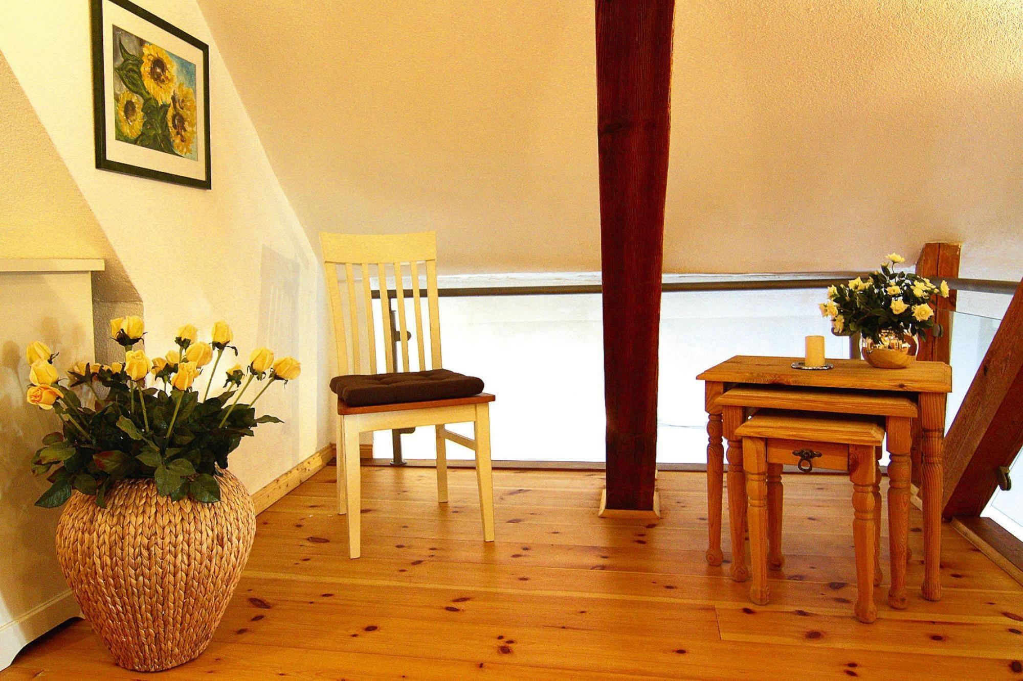 Moderne studio-ferielejlighed på øverste etage i et stråtækt, fredet bindingsværkshus fra 1788. Huset imponerer med sin rolige beliggenhed i den sydlige del af Rügen ved Schoritzer Wiek. Zudar-halvøen er præget af frodige grønne områder og fortryllende landskaber, hvoraf de fleste er blevet fredet. De afsondrede naturlige strande er ideelle for dem, der søger afslapning og gæster, der ønsker at slappe af på ferien. Hvis du kan lide lidt mere travlhed, så besøg de livlige badebyer med deres sandstrande, som byder på mange restauranter og shopping miles midt i deres feriestedsarkitektur. Højdepunkter inkluderet: Alle forbrugsbaserede energiomkostninger TRÅDLØS INTERNETADGANG