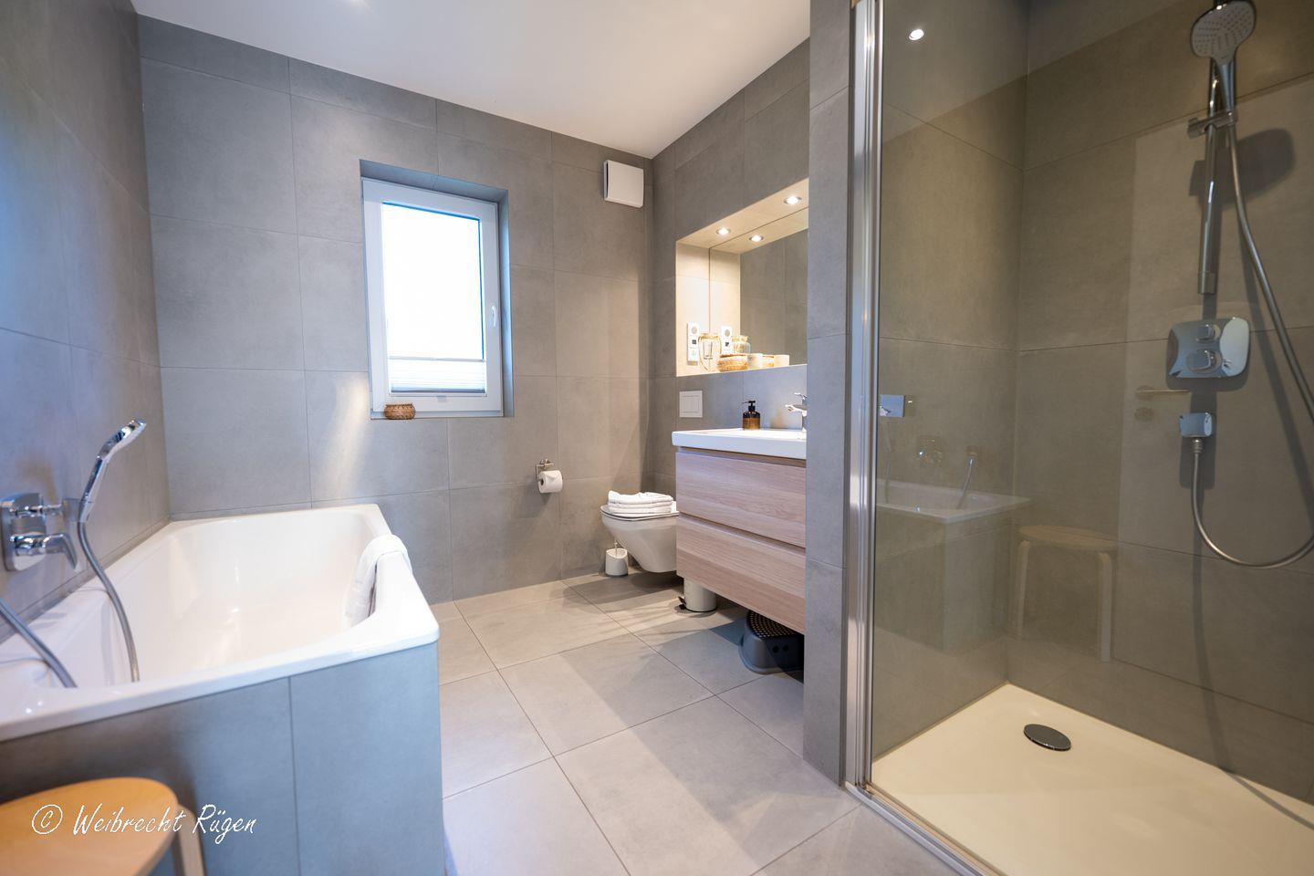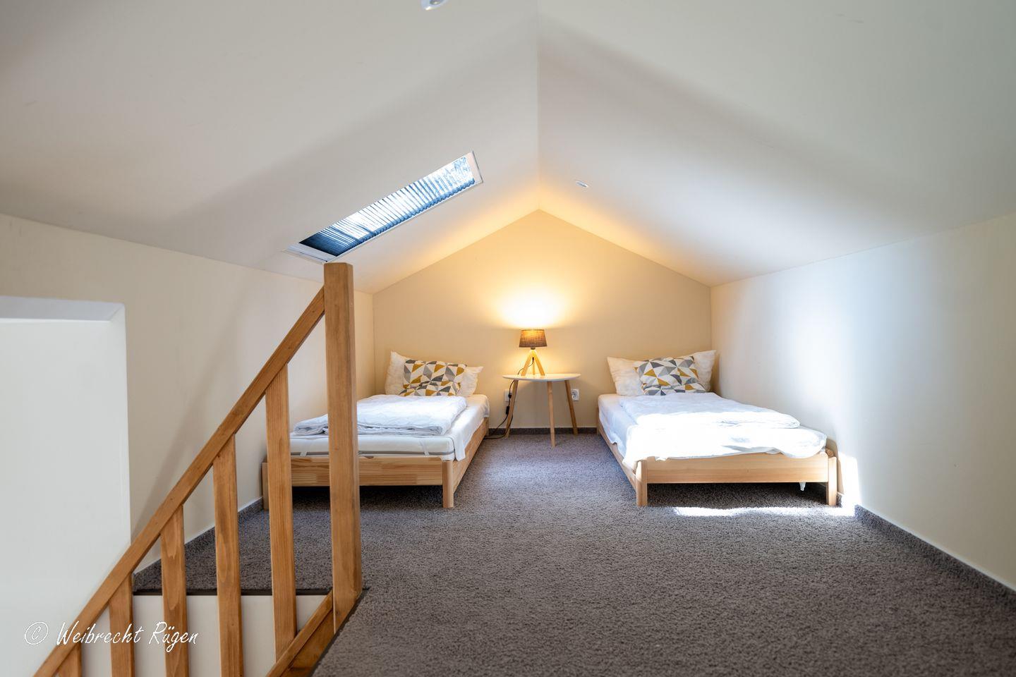Das Haus bietet Ihnen 2 Schlafzimmer im Erdgeschoss, eins mit Doppelbett und eins mit 2 Einzelbetten. Ein weiteres kleines Schlafzimmer mit 2 Einzelbetten befindet sich im ausgebauten Dachboden. Auch auf ein geräumiges Bad müssen Sie im Urlaub nicht verzichten, das Tageslichtbad verfügt über Badewanne und Dusche.