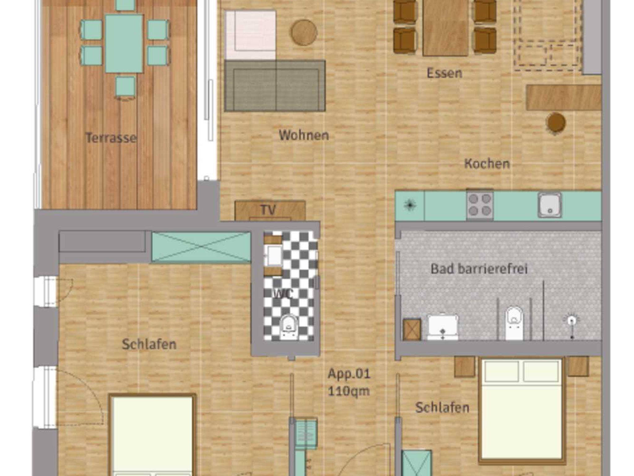 Der offene Wohnraum gibt den Blick auf den See frei und wirkt durch die dominierenden Grüntöne freundlich und beruhigend. Noch imposanter ist der Blick natürlich vom Westbalkon – mit Glück auch in einen herrlichen Sonnenuntergang. Zwei Schlafzimmer mit 160er Doppelbetten, barrierefrei gestalteter Sanitärbereich mit Dusche und WC, ein separates WC sowie Schalter und Steckdosen in Komforthöhe, das sind unsere Komfortablen. Die Komfortable 01 verfügt darüber hinaus über die Möglichkeit zur Aufbettung für zwei weitere Gäste (140er Wandklappbett) im großzügigen Wohnbereich.