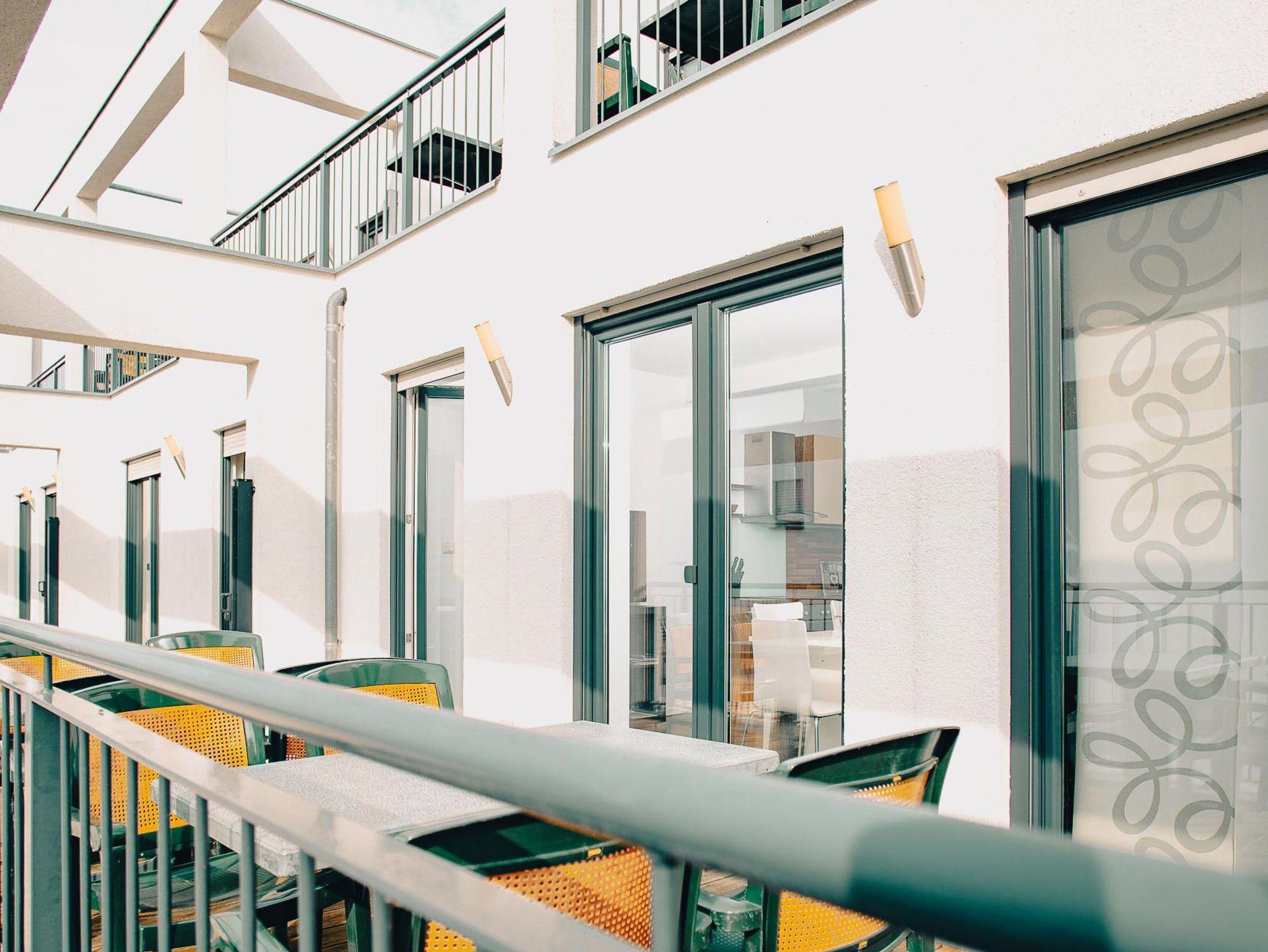 Wohnungen über den Balkon zusammen legen, da dieser über das gesamte Haus