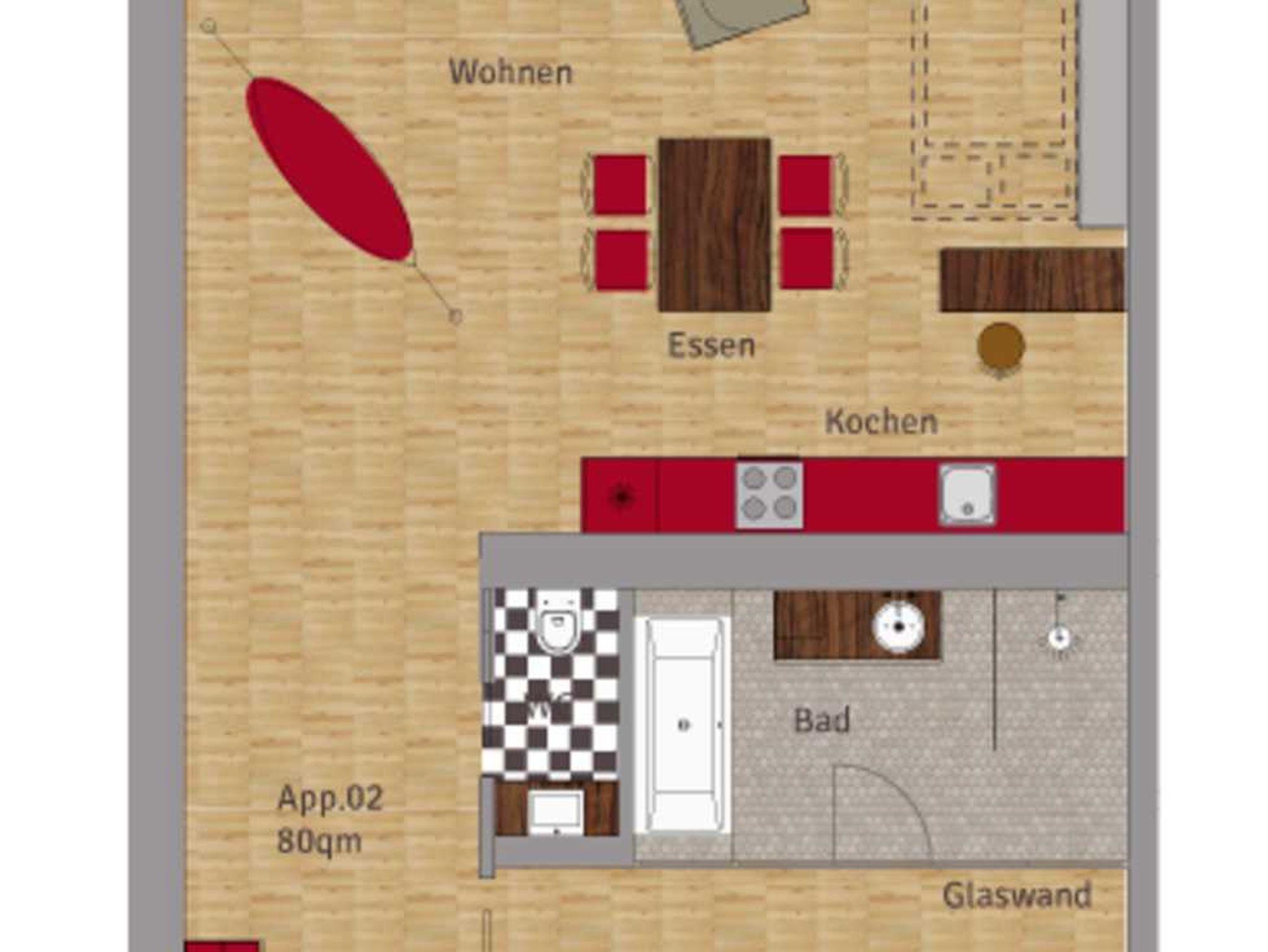 Der offene Wohnraum gibt, wie auch der Balkon zum Hafen, den Blick auf den See frei und bietet mit Hängematte und Sitzsäcken private Wohlfühlräume. Sinnliche Rottöne dominieren die Einrichtung und strahlen Wärme aus. Schlafzimmer und Bad verschmelzen, dank Glaswand, zu einem intimen Wohlfühlbereich mit bodengleicher Dusche, Badewanne und einladendem Doppelbett. Das separate WC ist vom Wohnbereich aus zugänglich. Die Intimen sind prädestiniert für erholsame Stunden zu zweit, Appartement 02 kann bei Bedarf aber auch aufgebettet werden (140er Wandklappbett).