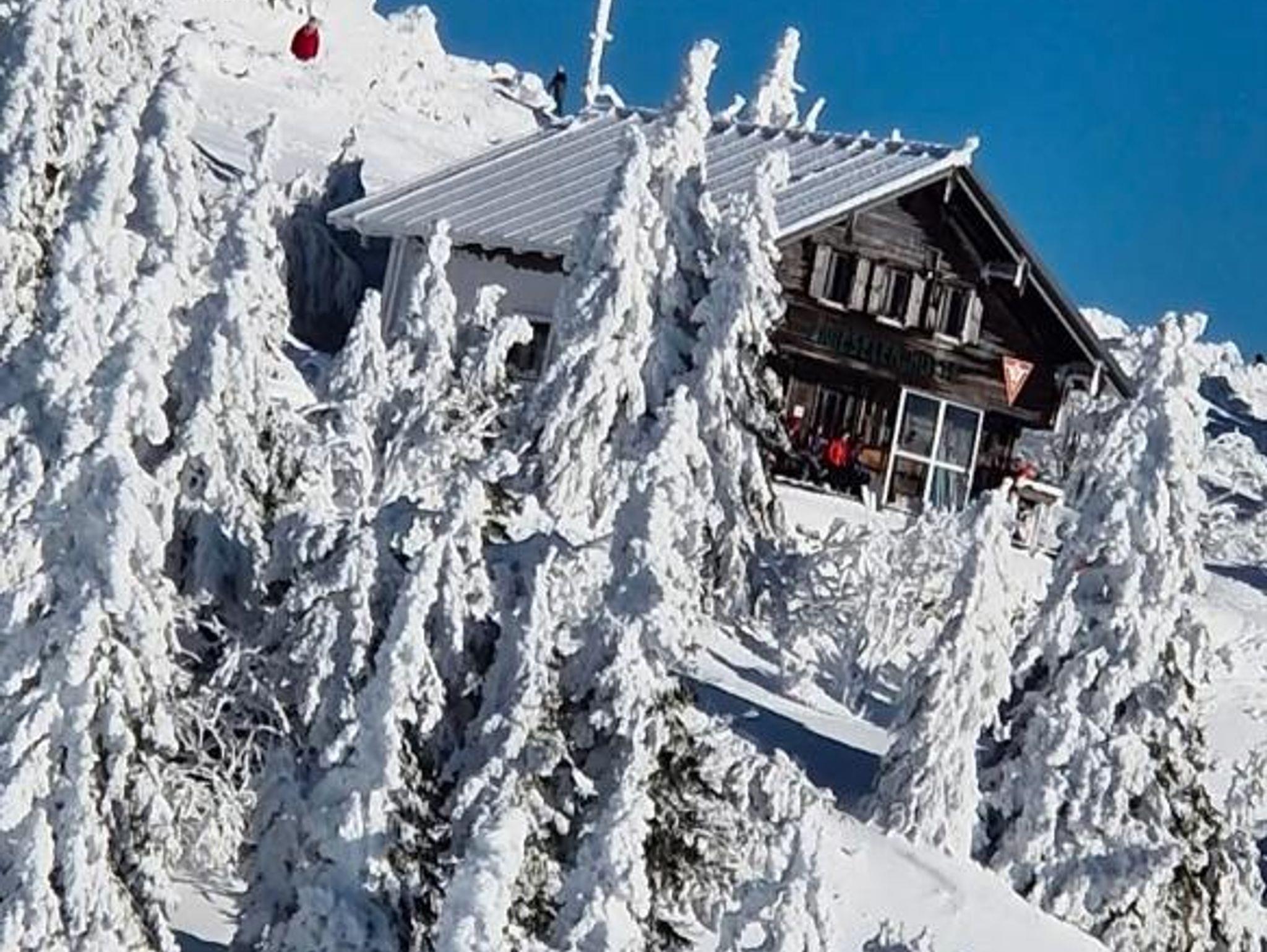 Die Vollholzküche ist komplett ausgestattet mit Geschirrspüler, Herd mit Ceranfeld und Backofen, Kühlschrank mit Gefrierfach, Wasserkocher, Toaster, Kaffeemaschine, Kaffeevollautomat, Mikrowelle sowie Geschirr. Eine Eckbank mit Tisch und Stuhl lädt zum gemeinsamen Essen ein. Ein Parkplatz direkt am Haus, Abstellmöglichkeiten für Fahrräder und Ski runden das Angebot ab.