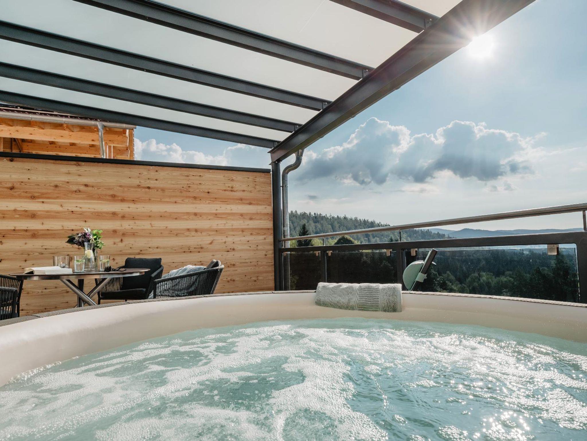 Ein besonderes Highlight ist die 50 qm große überdachte Terrasse mit Sitzgruppe, Sonnenliegen und einem Whirlpool. Genießen Sie ihren privaten Wellness- und Relax-Bereich!