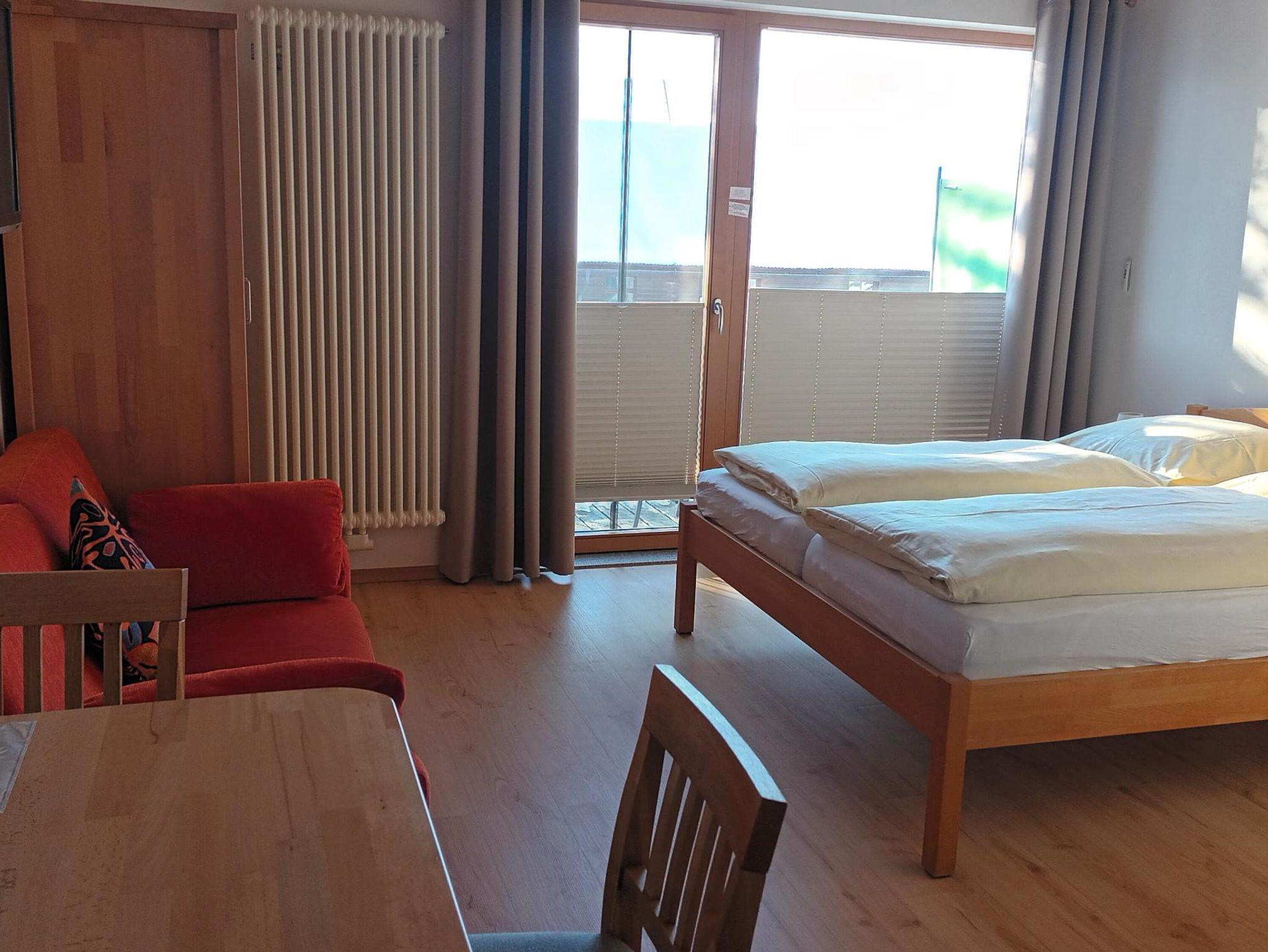 2 Mini-Appartements für 1-2 Personen, DU/WC, Wasserkocher, Kühlschrank, Frühstückseck, Sat-TV und Balkon.