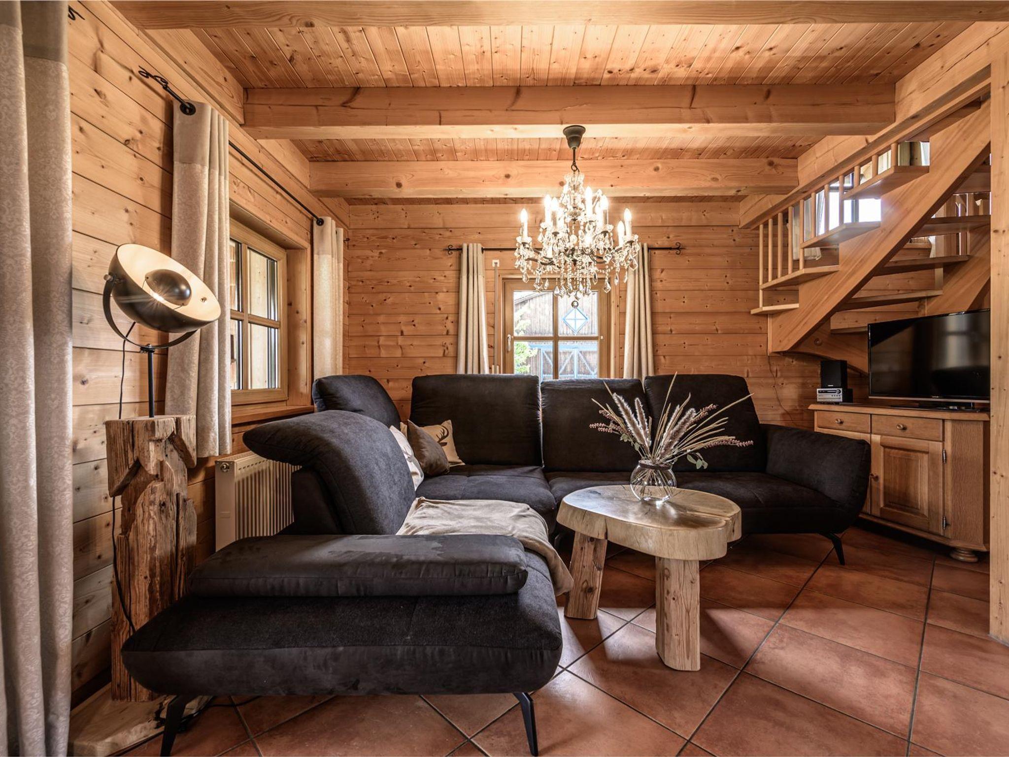 Chalet für 6 Personen mit hauseigener Sauna und Whirlpool. 3 Schlafzimmer 2 Bäder mit Badewanne. Geräumige Wohnküche mit Kachelofen. Voll ausgestattete Küche mit Spülmaschine. Eigene große Terasse wo sich der Whirlpool und die Sauna gibt die Möglichkeit kostenlos zu reiten und Reitunterricht zu nehmen. Außerdem sind auf dem Bauernhof eine Spielscheune Heuburg und ein Aufenthaltsraum vorhanden. Parkplatz direkt vor dem Chalet ganzjährig mit dem Pkw erreichbar. Gerne auch mit Brötchenservice.