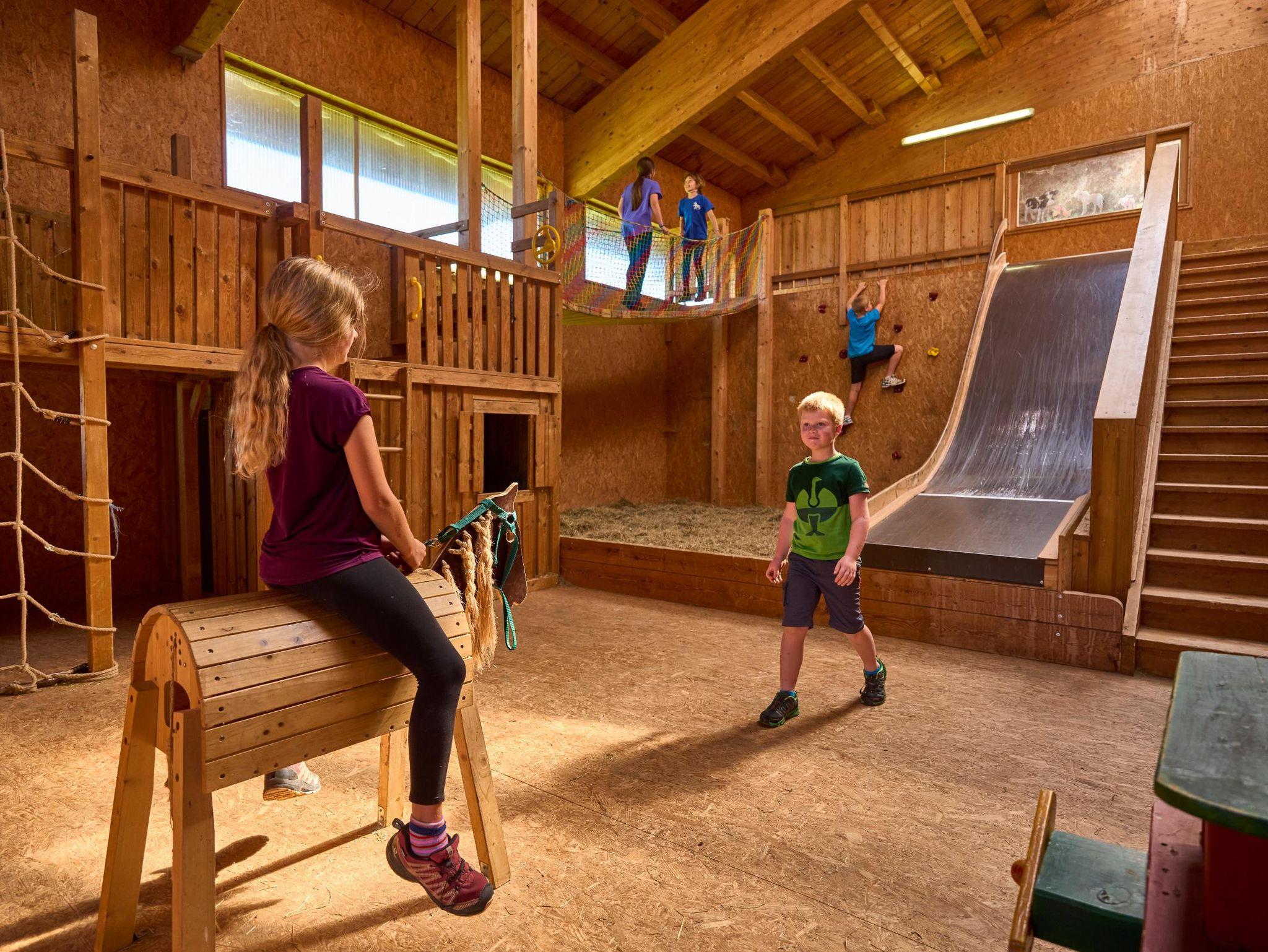 Aufenthaltsraum, Fitnessraum, Liegewiese, Grillplatz, Flachbild-TV, Kinderbett, Hochstuhl, Brötchenservice, großer Spielplatz, Spielzimmer, Tischtennisraum mit Fußballkicker, Fußballplatz, Trampolin, Co-Karts. Heu-Spielscheune mit Heurutsche uvm.