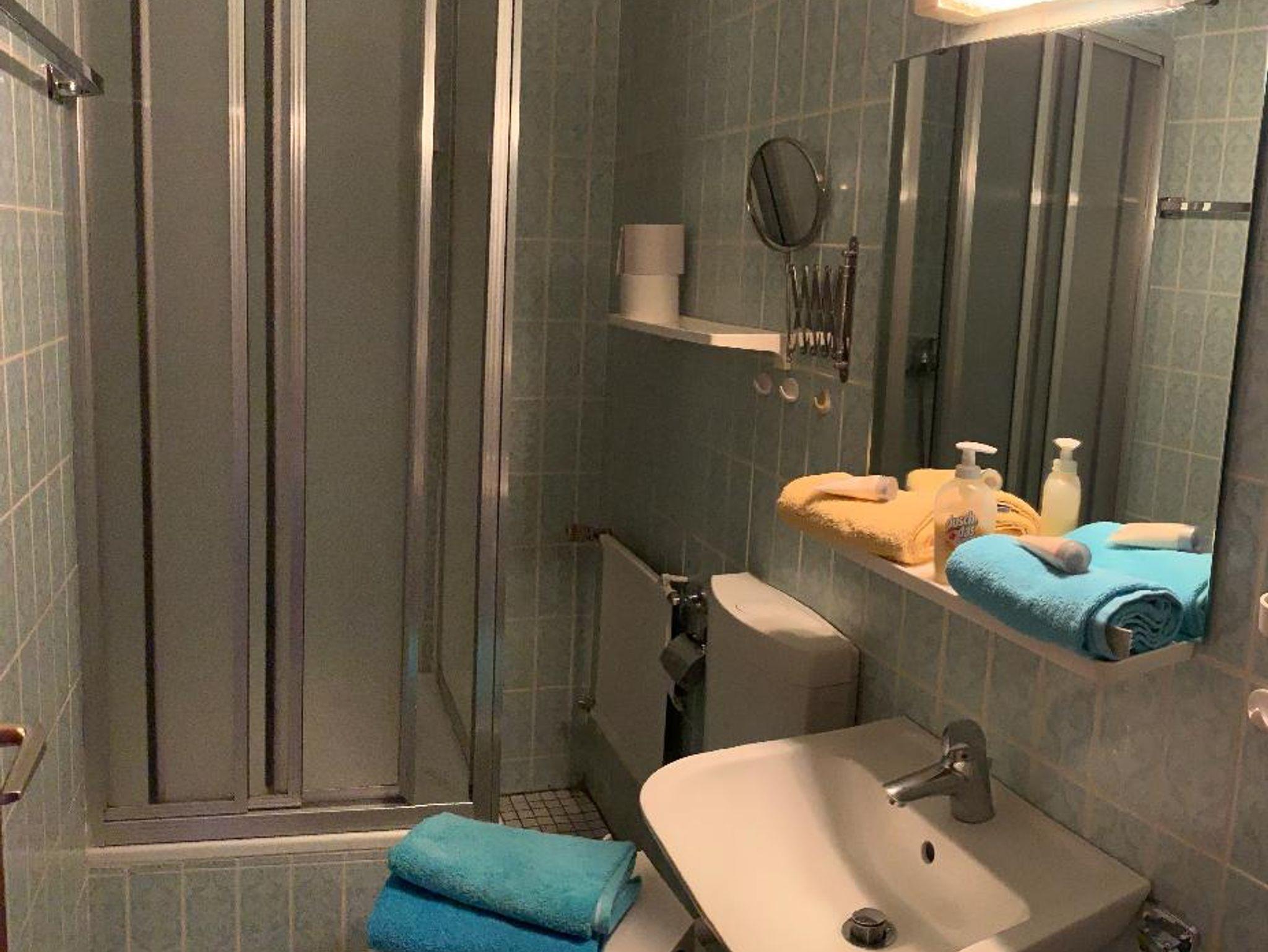 Zimmer mit Dusche, WC, Fernseher (Flachbild) und Balkon (Südseite)