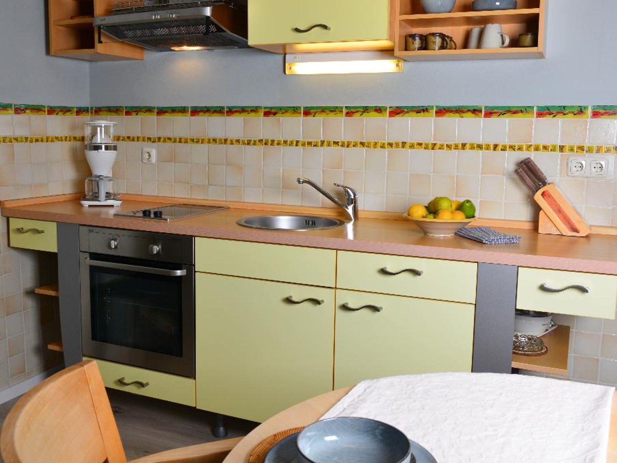 Voll ausgestattete Küche mit gemütlicher Sitzecke und