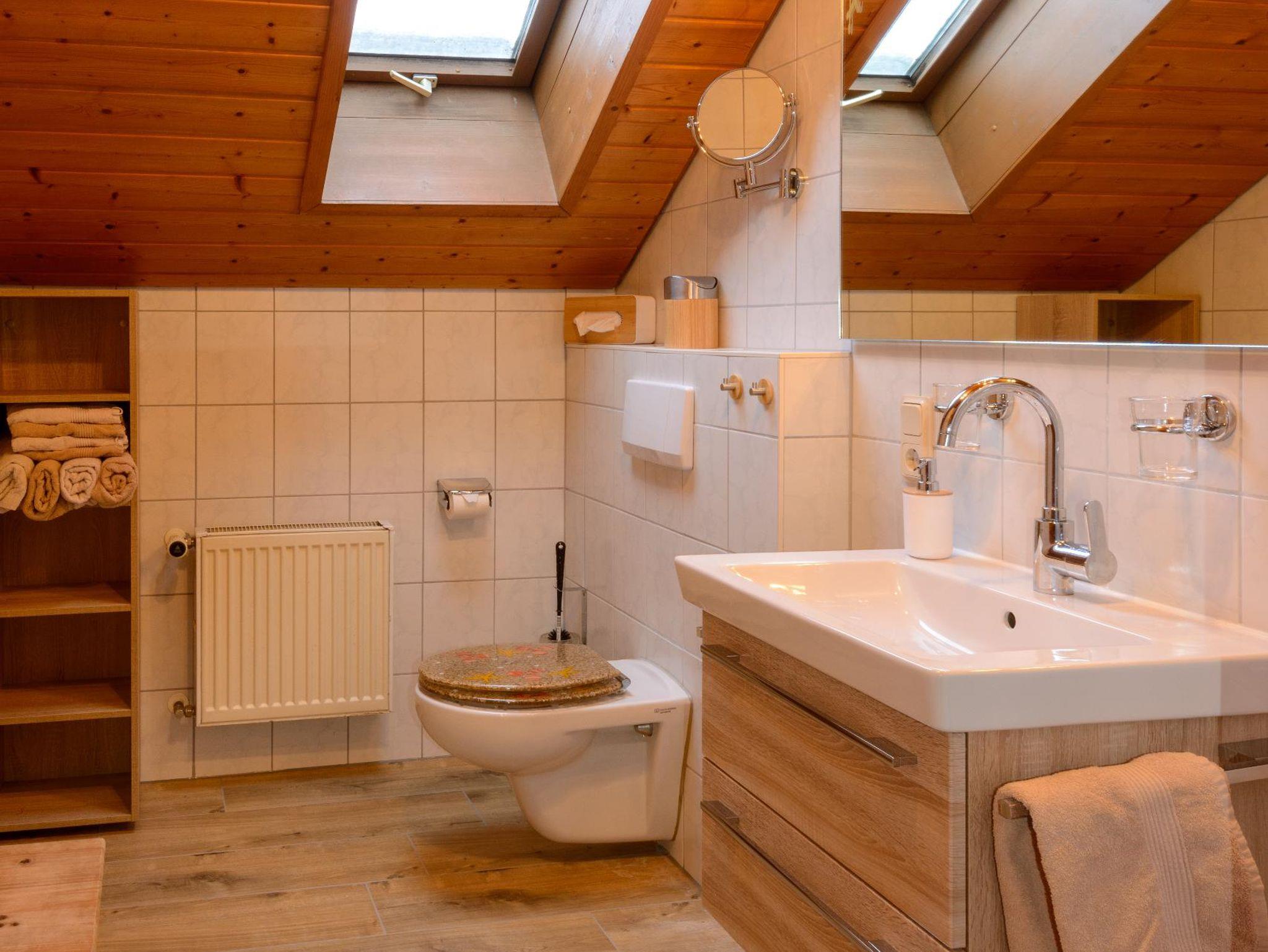 Das Badezimmer ist mit Rainshower-Dusche und WC ausgestattet. Hand- und Badetücher stellen wir Ihnen selbstverständlich zur Verfügung.