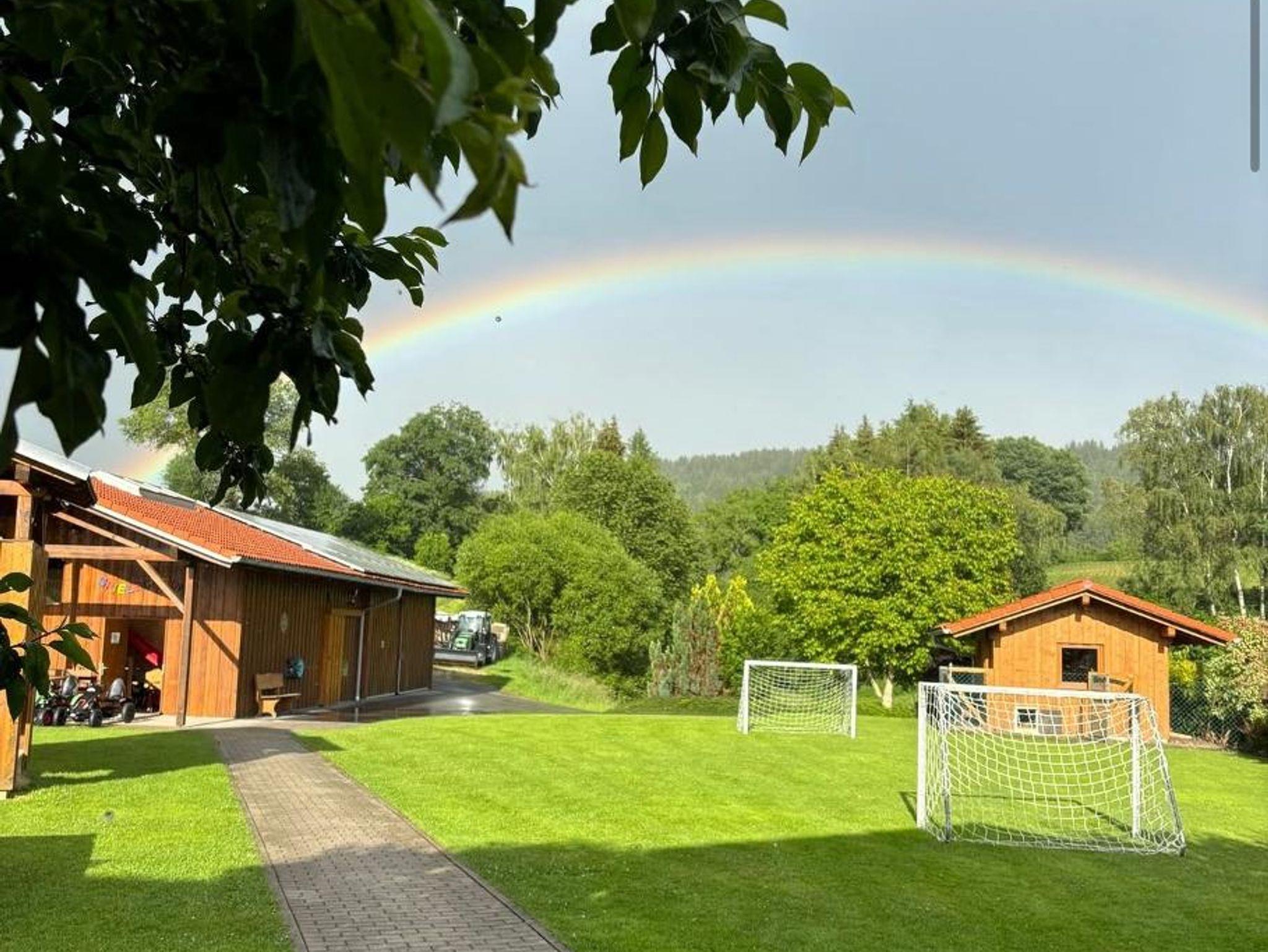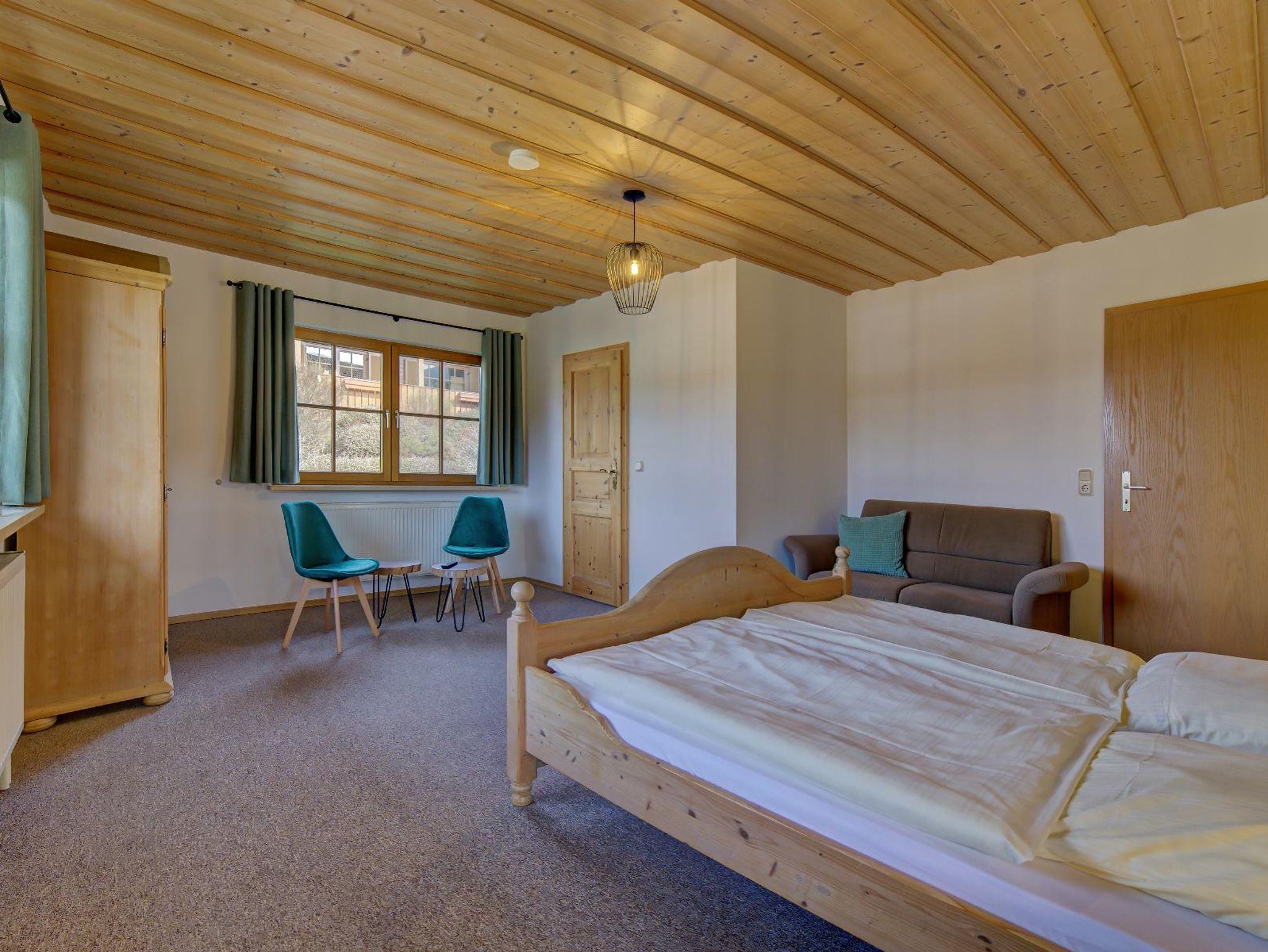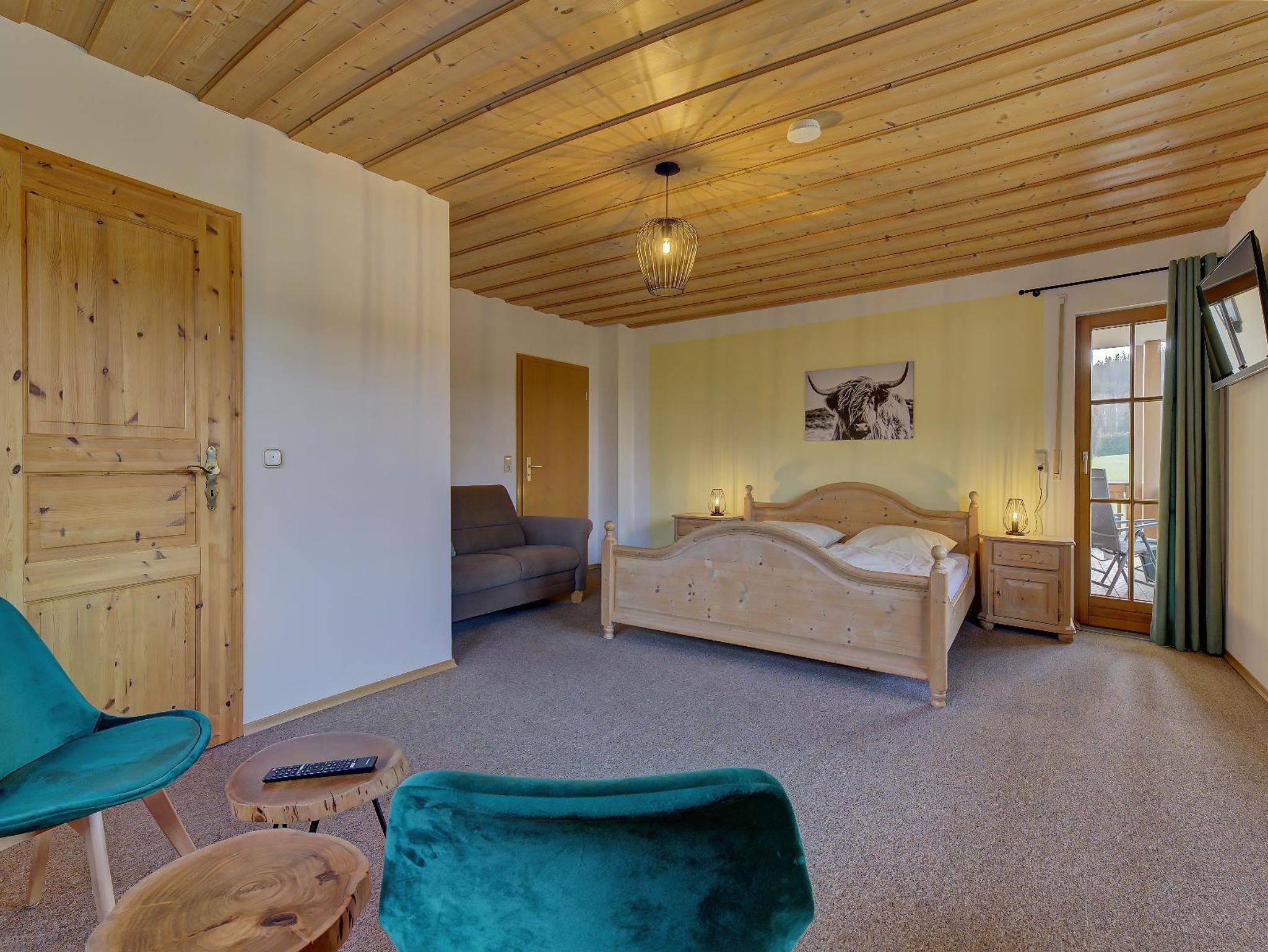 Ab Juni erstrahlt unsere extra große Ferienwohnung mit 120 m² in neuem Glanz und bietet viel Platz für bis zu 10 Personen. Die Wohnung ist sehr gemütlich eingerichtet, hell und sonnig gelegen im 1. Stock und verfügt über einen Südbalkon mit Tisch und Stühlen, Balkonliegen, Wäscheständer sowie Weber-Elektrogrill. Genießen Sie den traumhaften Blick auf Wald und Wiesen. Die großzügige Wohnküche lädt zum gemütlichen Zusammensitzen ein und bietet eine bequeme Couch, einen sehr großen Holzesstisch, einen großen Flachbild-SAT-TV, Radio sowie WLAN. Die bestens ausgestattete Küchenzeile verfügt über Geschirrspüler, Kühlschrank mit Gefrierfach, Herd und Backofen, Wasserkocher, Toaster, Kaffeemaschine, Dolce-Gusto-Maschine, Kaffeevollautomat sowie ausreichend Geschirr. Bettwäsche, Handtücher, Duschtücher und Geschirrtücher sind inklusive. Die Ferienwohnung verfügt über vier separate Schlafzimmer mit Doppelbetten, Holzfußboden und Flachbild-SAT-TV. Ein Schlafzimmer ist zusätzlich mit einem eigenen Bad mit Dusche und WC sowie Safe ausgestattet, ein weiteres Schlafzimmer verfügt zusätzlich über eine zweisitzige Couch. Auf Wunsch stellen wir Ihnen gerne ein Zustellbett oder ein Babyreisebett inklusive Bettzeug, einen Hochstuhl oder einen Rausfallschutz zur Verfügung. Darüber hinaus steht Ihnen ein großes Badezimmer mit Dusche, WC und zwei Waschbecken zur Verfügung, Handtücher und ein Föhn sind vorhanden. Parkplätze befinden sich direkt am Haus, außerdem stehen Abstellmöglichkeiten für Fahrräder und Ski zur Verfügung. Starten Sie gut gestärkt in den Tag mit liebevoll zusammengestellten Frühstückskörben, Frühstück in unserer nahegelegenen Pension oder einem bequemen Semmel-Service. Für unsere kleinen Gäste gibt es jede Menge Spaß in unserer Spielscheune mit Kinderspielparadies. Unser Wellnessbereich erhält derzeit ein neues Make-Over; ab Juni erwarten Sie eine finnische Sauna, ein Jacuzzi für bis zu vier Personen sowie Schwebeliegen. Nach Eintrag in die Belegungsliste steht Ihnen der Wellnessbereich stundenweise exklusiv gegen eine kleine Gebühr zur Verfügung. Bitte beachten Sie, dass Onlinebuchungen Gebühren enthalten und in der Ferienwohnung Hennenkobel keine Haustiere erlaubt sind.