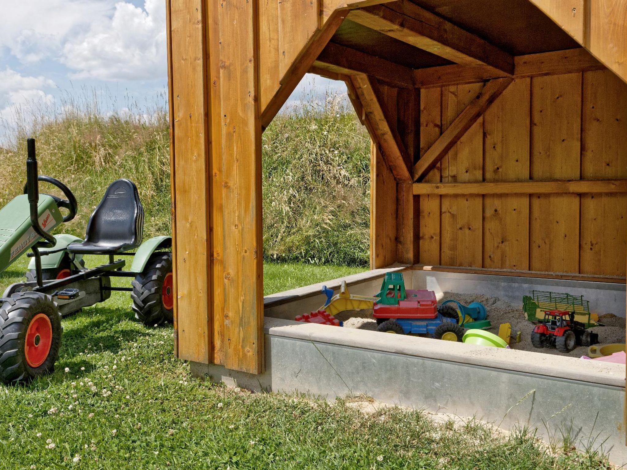Getreu unserem Motto können Eltern bei uns den Alltag hinter sich lassen, während Ihre Kinder auf dem Spielplatz mit Tischtennis, Fußballtor und Kleinkinderspielplatz toben, in der Spielscheune Spaß haben oder mit Kettcar und Co. das Feriendomicil erkunden.