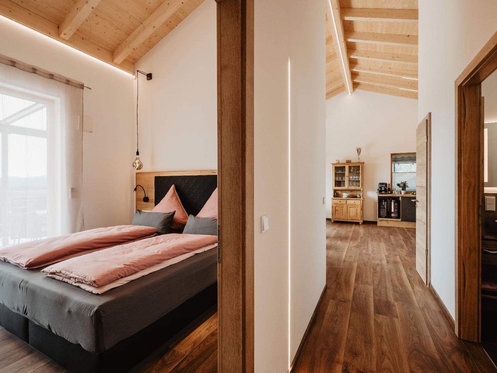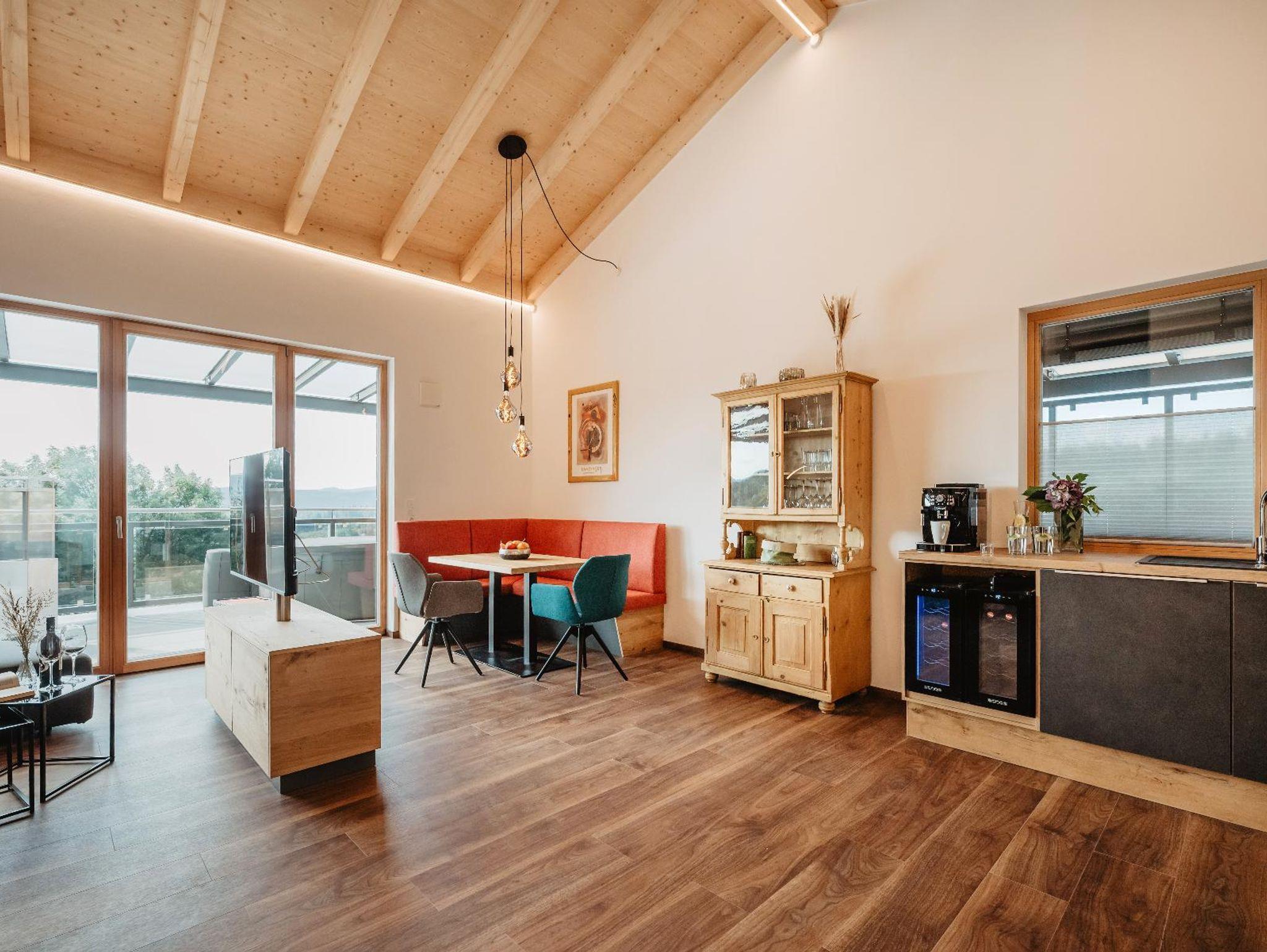 Es erwarten Sie vier neu gebaute moderne und hochwertig eingerichtete Feriensuiten in ruhiger Ortsrandlage mit einer grandiosen Aussicht über Zwiesel und die Berge des mittleren Bayerischen Waldes. Jede Suite wurde vom Deutschen Tourismusverband mit fünf Sternen ausgezeichnet.