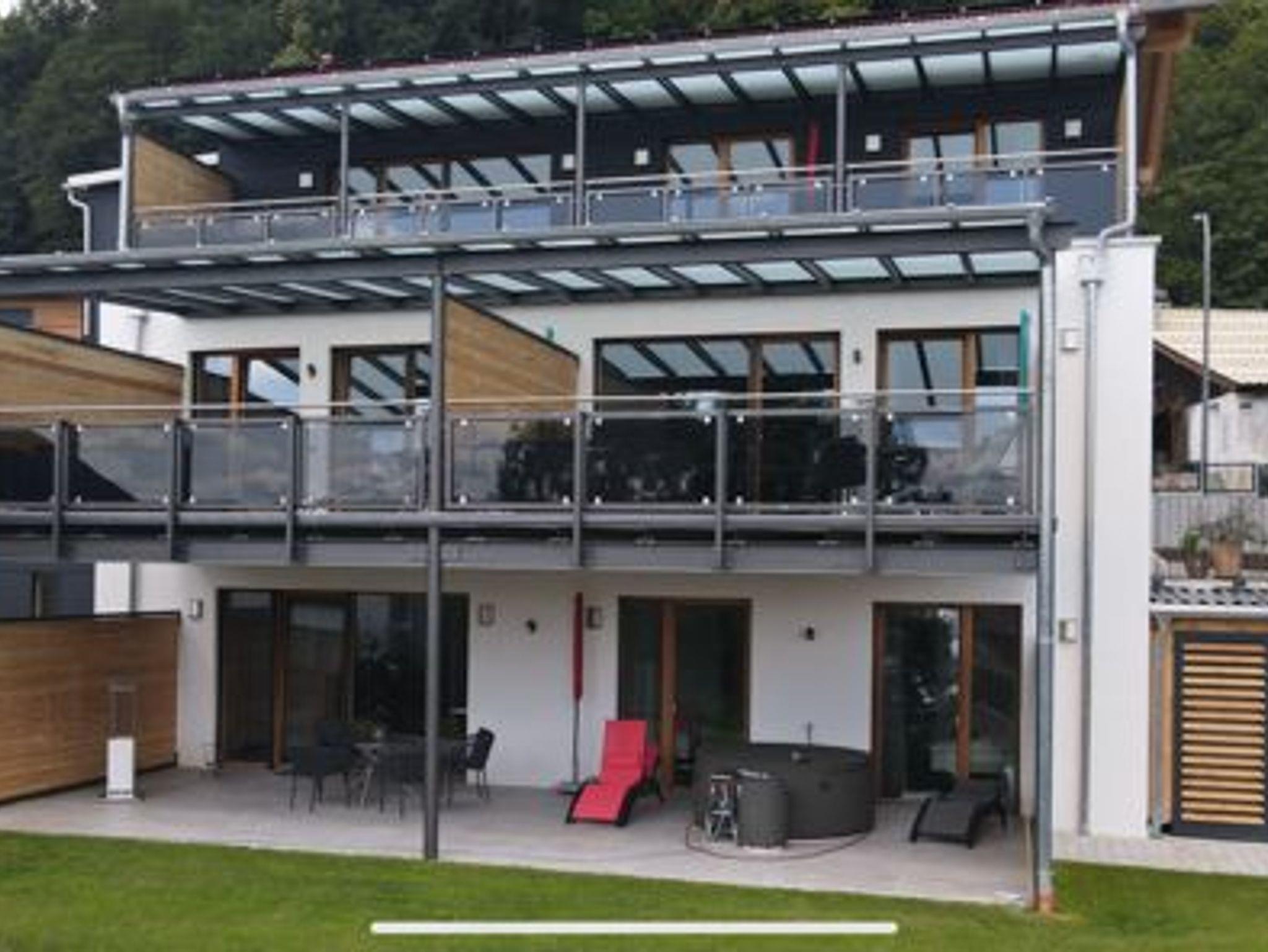 Ein besonderes Highlight ist die der 40 qm große überdachte Dachterrasse, die mit Sonnenliegen, Sitzgarnitur und einem Whirlpool ausgestattet ist. Von dort aus haben Sie einen traumhaften Ausblick auf die grandiose Natur.