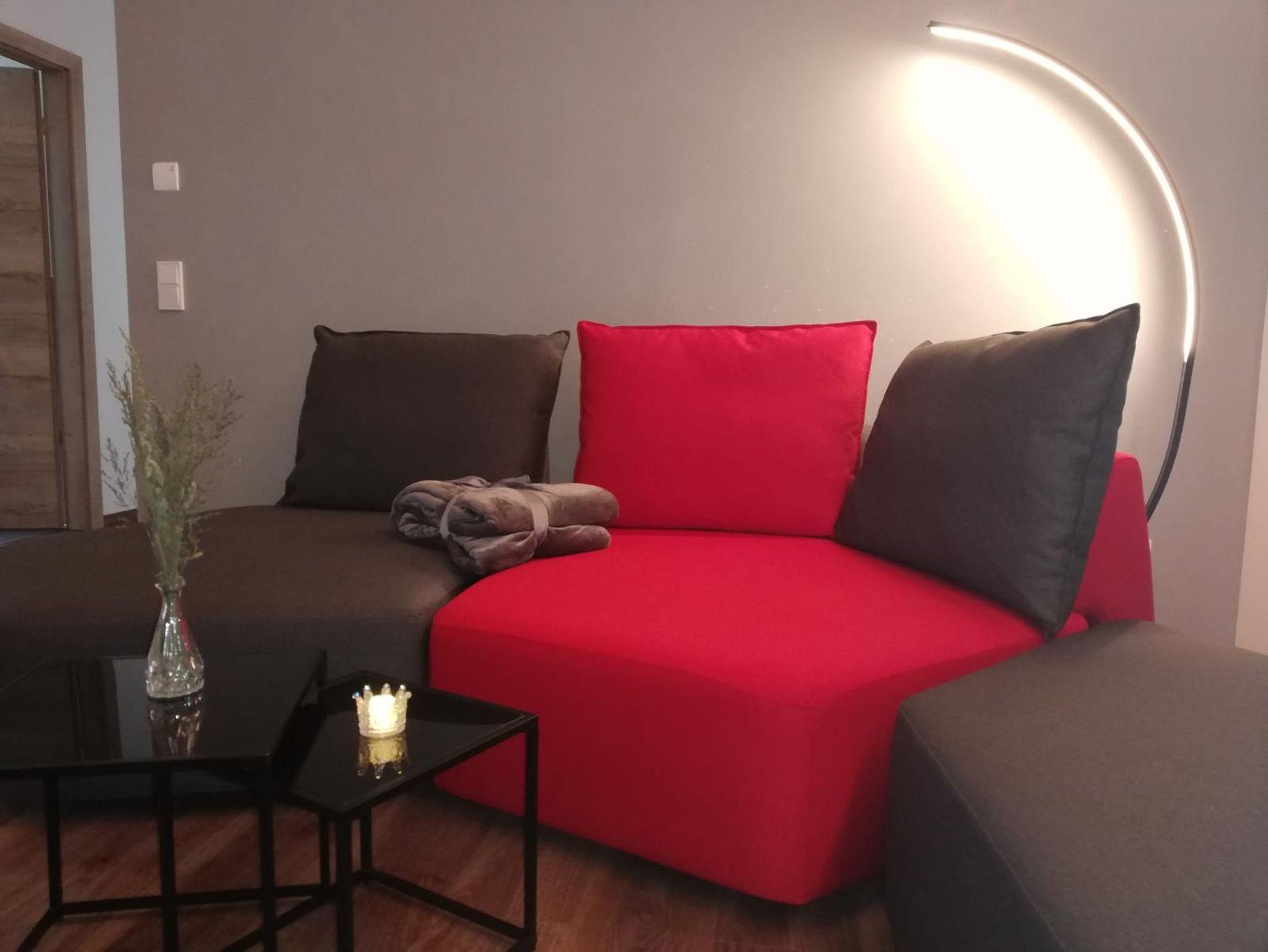 Diese luxuriöse Wohnung mit Sauna und Whirlpool liegt im Obergeschoss und ist über einen Treppenaufgang und einen eigenen Eingang erreichbar. Sie bietet Raum und Wellness für vier Personen.