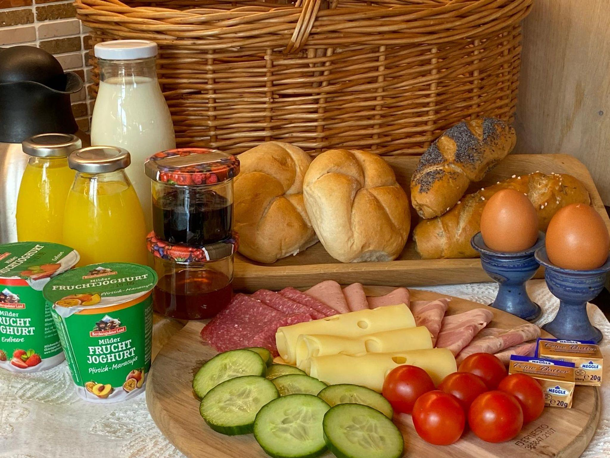 Gerne können Sie vorab Frühstücksbuffet in unserer Pension, einen unserer reichhaltigen Frühstückskörbe oder bei Anreise den Semmelservice zu buchen.