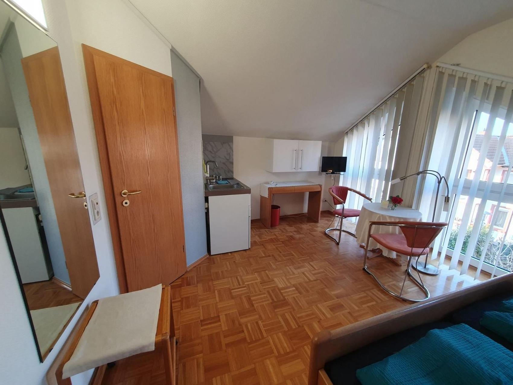 Bis zu 44 Personen buchbar! Apartment mit einem Doppelbett, voll möbliert mit Bad, Miniküche (Kühlschrank, Doppelherd, Spüle, Besteck, Teller, Tassen, Wasserkoscher...) und TV.Kontaktloser Zugang (ohne Personen) über zwei Codes: Sie erhalten je ein Code für den Hauseingang und einen Code für den Zugang zum Apartment.Sie können auch mehrere Apartments anmieten... bis zu 42 PersonenZwingenberg hohe Lebensqualität, starke Betriebe und ideale Voraussetzungen spricht für unternehmerisches Wachstum in der Wirtschaftsregion Bergstraße: Die älteste südhessische Bergstraßen-Kommune profitiert von ihrer zentralen Lage inmitten der Metropolregionen Frankfurt/Rhein-Main und Rhein-Neckar. Von Zwingenberg aus gelangt man schnell an sein Ziel! An die Autobahn A5 besteht eine direkte Anbindung, aber auch die A67 und die Bundesstraßen B3, B47 und B460 sind schnell erreichbar. Besonders die Nähe zum Flughafen Frankfurt ist ein unschlagbarer Standortvorteil.Auch leben lässt es sich hier ganz ausgezeichnet: Die historische Altstadt mit zahlreichen Fachwerkhäusern und malerischen Ausblicken macht die Zwingenberg zu einem sehr beliebten Wohnstandort.Der Standort Zwingenberg ist von folgenden Orten entfernt:vom Hauptbahnhof Darmstadt nur 18 Min. (22 km)vom Frankfurter Flughafen ca. 29 Min. (44 km)von Heidelberg knappe 32 Min; (42 km) vom Mannheim 39 km (41 km)