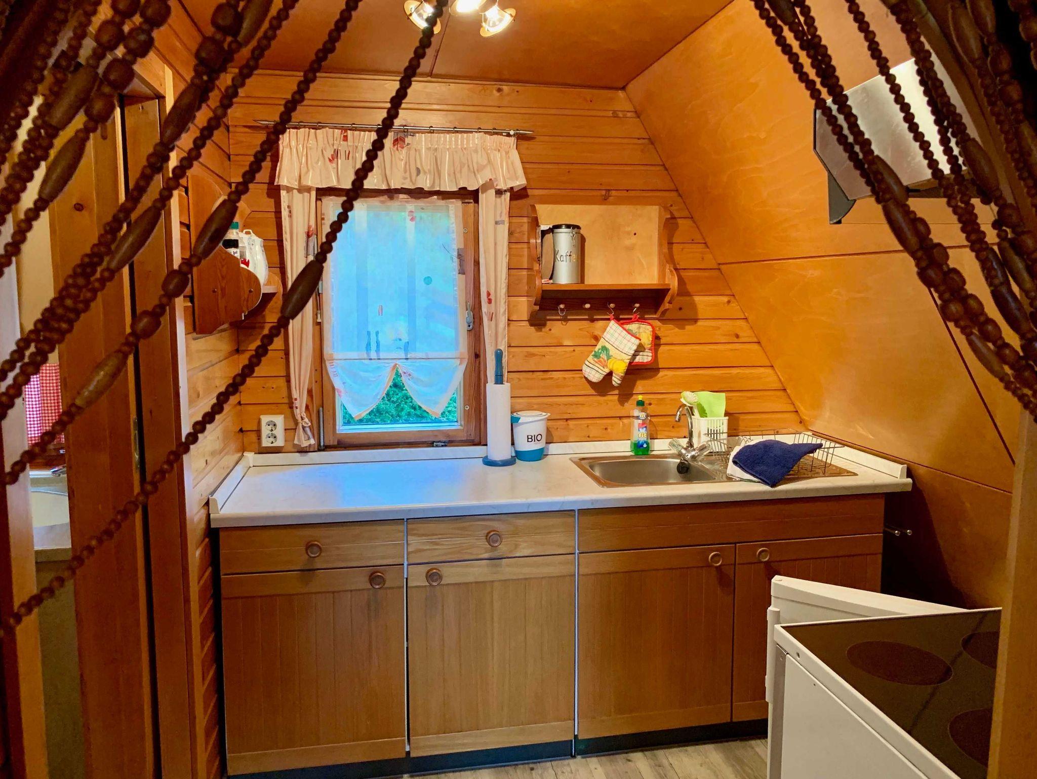 Das Grundstück hat eine Fläche von ca. 305 qm und ist mit einer größeren massiven Finnhütte (42 qm) mit kleiner Terrasse und kleinem Balkon bestückt. Die Unterkunft bietet Platz für bis zu 6 Personen. Vier Schlafplätze befinden sich im Spitzboden der Hütte. Es handelt sich ausschließlich um Einzelbetten. 2 Schlafplätze befinden sich auf der Schlafcouch im Aufenthalts-/Wohnraum. Die Unterkunft ist winterfest. Die Ausstattung ist einfach und rustikal, es ist aber alles da, was man so braucht. In der Küche befindet sich eine Spüle mit Warm- und Kaltwasser, ein Kühlschrank, ein Wasserkocher und eine Kaffeemaschine. Nebenan befindet sich ein kleines Bad mit Dusche, Waschbecken und WC. Im Aufenthaltsraum steht ein Tisch mit Platz für sechs Personen. Auf dem Grundstück befindet sich weiterhin ein kleiner Grillplatz.