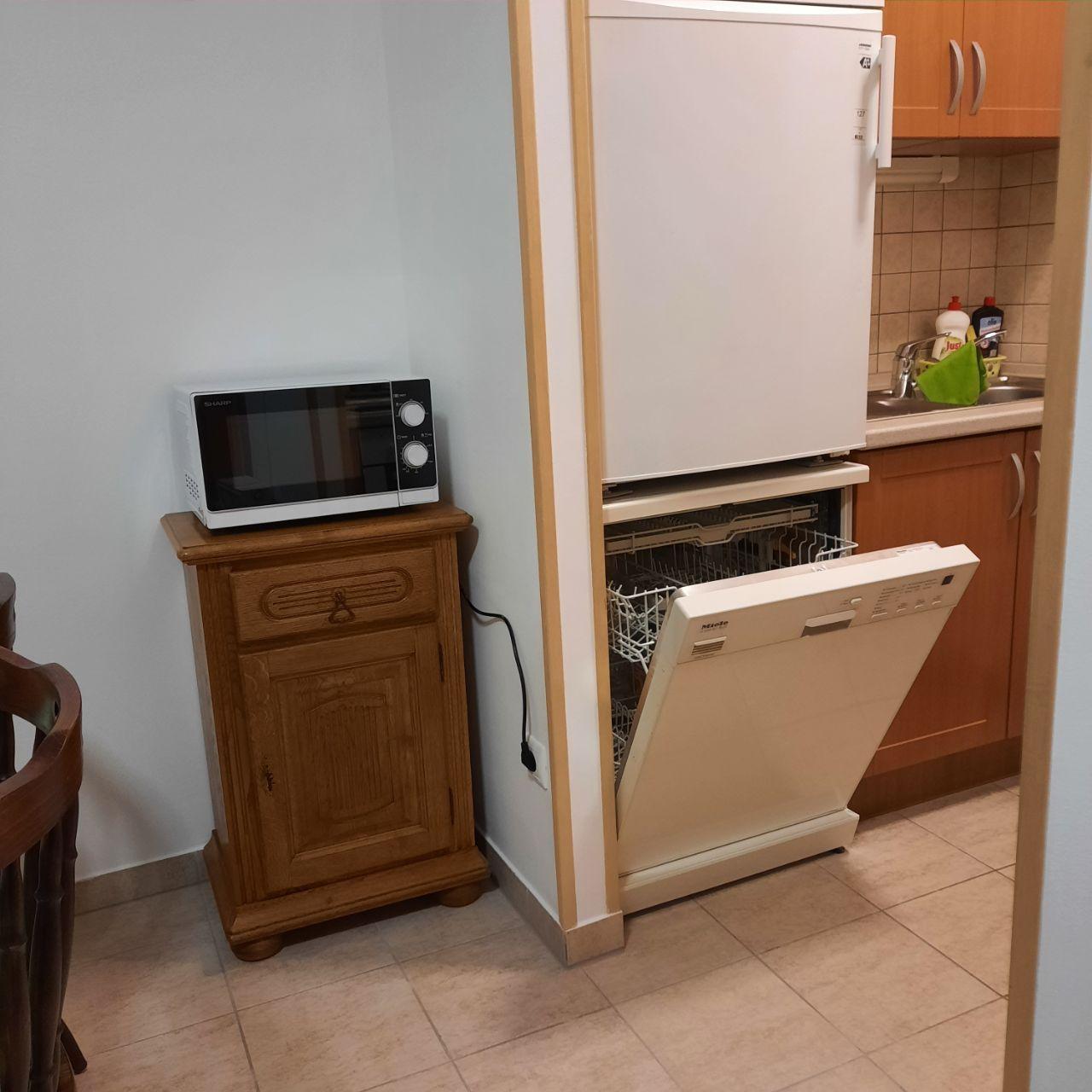 Kitchen: Ceran stove; Coffee machine; Coffee machine; Dishwasher; Electric stove; Freezer; Freezer; Fridge; Microwave; Oven; Stove; Toaster
