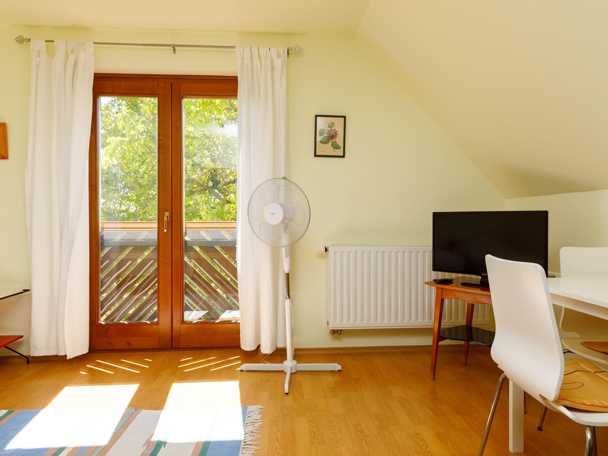 Balatonakali 15 km from Balatonfüred: Child friendly, beautiful, cosy house "Nadori 1", 2 storeys, built in 2006. 100 m from the lake, 500 m from the beach. Private: garden 400 m2, lawn for sunbathing. Terrace, barbecue, fireplace (sandbox). In the house: WiFi, central heating system, air conditioning, washing machine. Shop 300 m, grocery 500 m, restaurant 200 m, bakery 500 m, café 400 m, bicycle rental 900 m, bus stop "Balatonakali, bejárati út" 450 m, railway station "Balatonakali-Dörgicse" 350 m, thermal baths "Hévíz" 52 km. Golf course (18 hole) 5 km, tennis 4 km, cycle lane 100 m, children's playground 200 m. Nearby attractions: Tihany 12 km, Balatonfüred Annagora Aquapark 14 km, Veszprem Zoo 34 km, Festetics Castle 50 km, Balatonbob Theme Park 36 km, Tihany Adventure Park 12 km. Hiking paths: Badacsony 25 km. Groups of teenagers on request only. Please note: the keys‘ handover takes place by the agency Interhome in Balatonfüred, 16 km. Railway line closeby 100 m from the property.