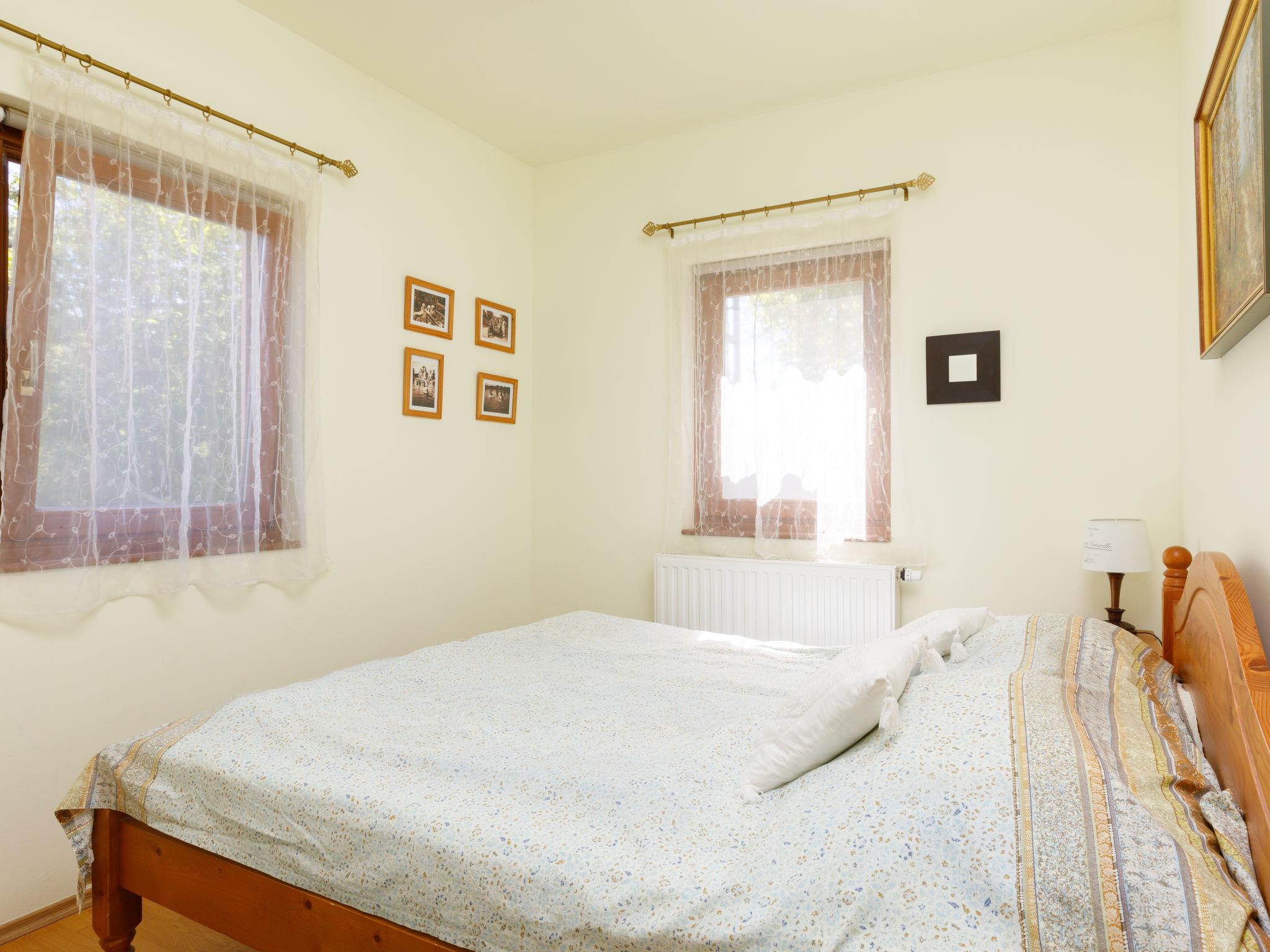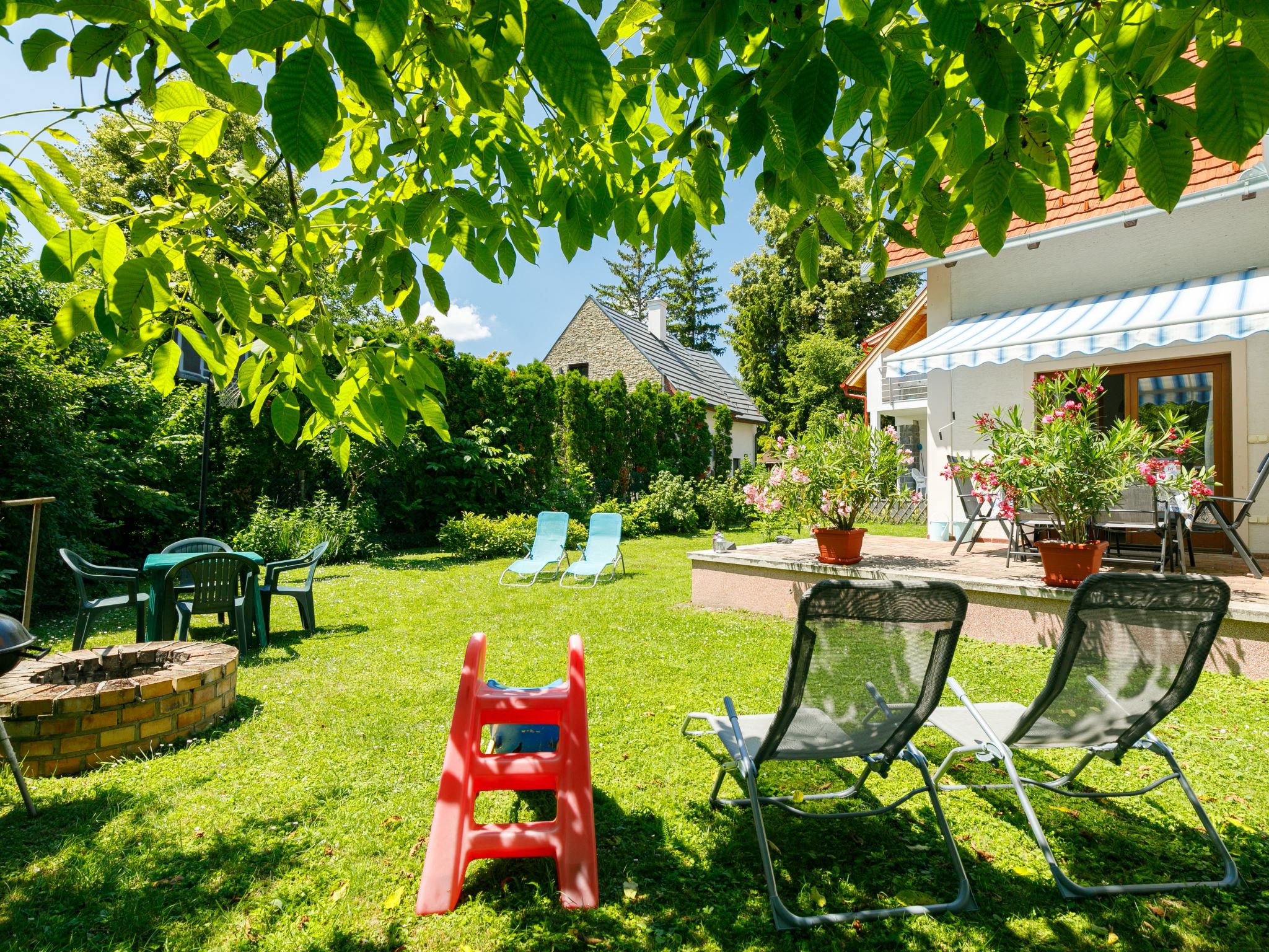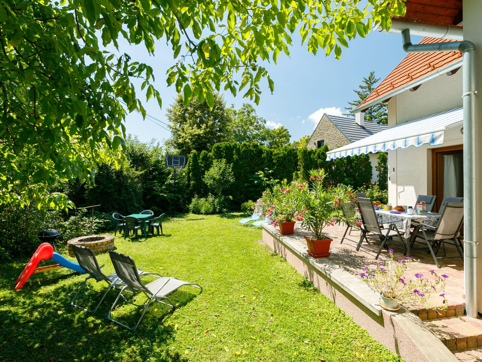 Balatonakali 15 km from Balatonfüred: Cosy house, 2 storeys. 100 m from the lake, 500 m from the beach. For shared use: garden 400 m2, lawn for sunbathing. Barbecue, fireplace (sandbox). In the house: WiFi, central heating system, air conditioning. Shop 300 m, grocery 500 m, restaurant 200 m, café 400 m, bus stop "Balatonakali, bejárati út" 450 m, railway station "Balatonakali-Dörgicse" 550 m, grass beach 300 m, thermal baths "Hévíz" 52 km. Golf course (18 hole) 5 km, tennis 4 km, cycle lane 100 m, children's playground 350 m. Nearby attractions: Tihany 12 km, Balatonfüred Annagora Aquapark 14 km, Veszprém Zoo 34 km, Festetics Castle 50 km, Balatonbob Theme Park 36 km, Tihany Adventure Park 12 km. Hiking paths: Badacsony 25 km. Please note: the keys‘ handover takes place by the agency Interhome in Balatonfüred, 16 km. Railway line closeby 100 m from the property.