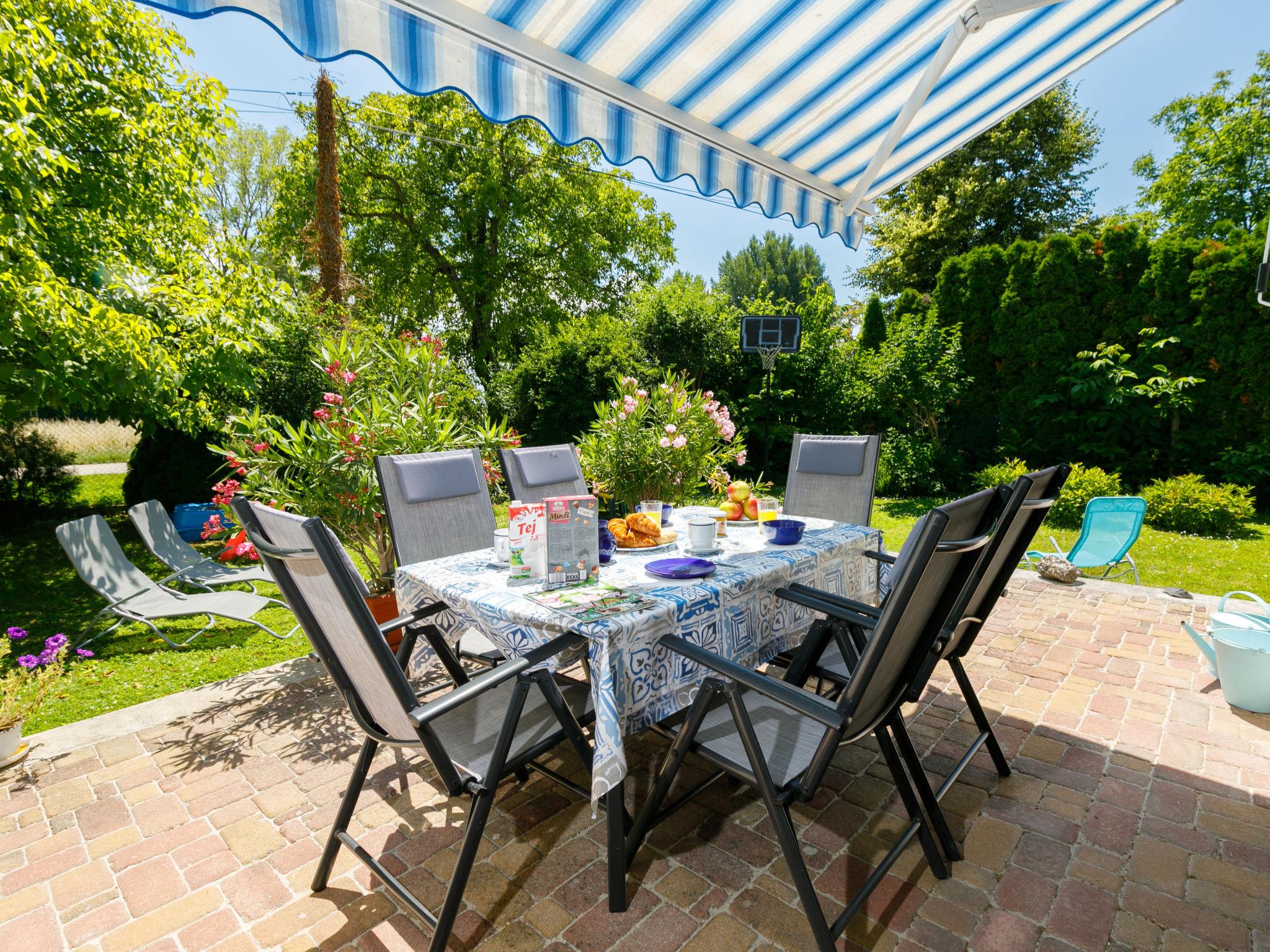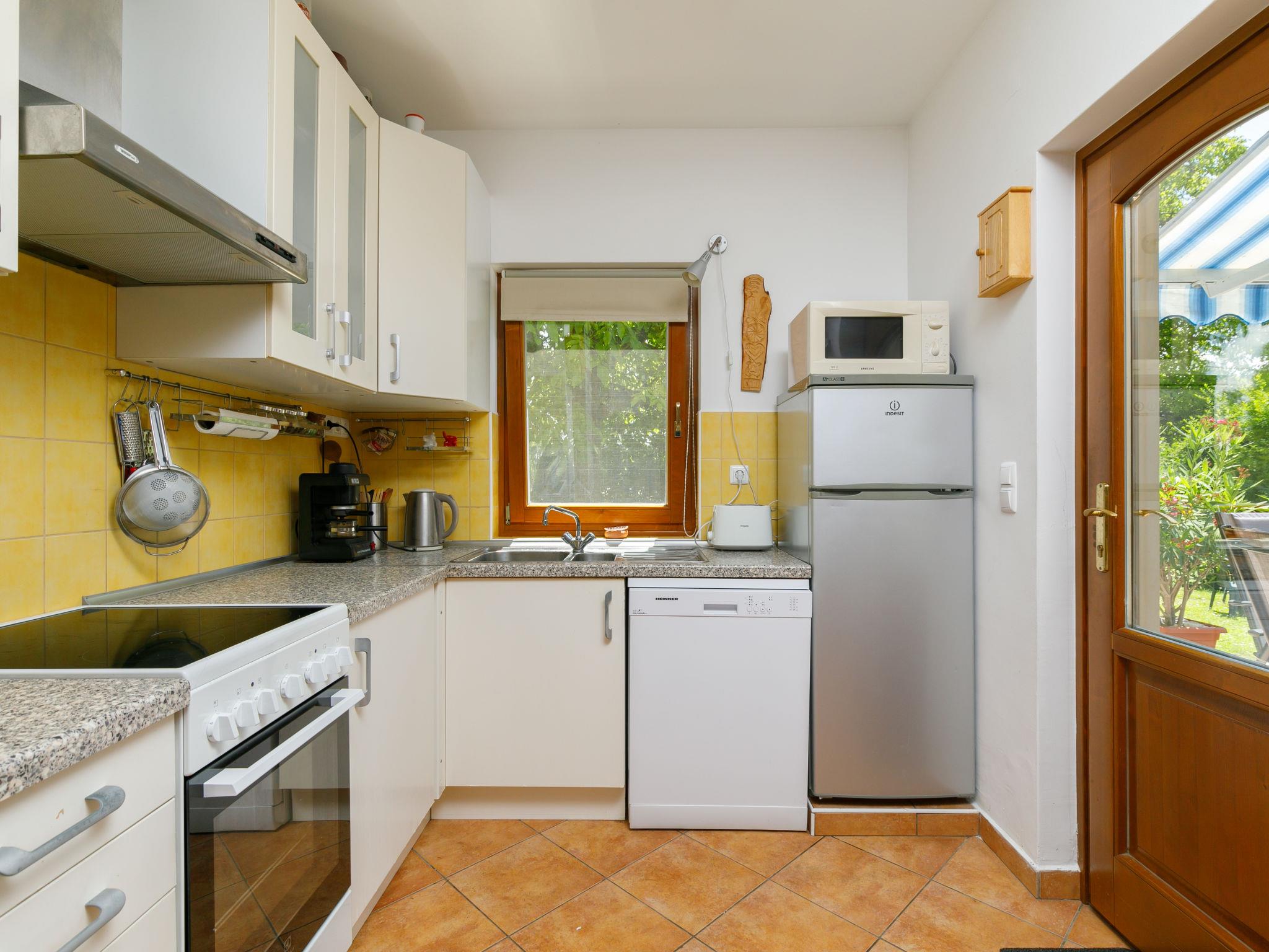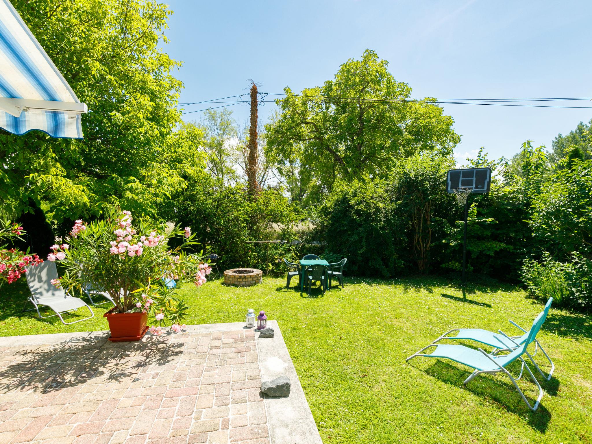 Balatonakali 15 km from Balatonfüred: Cosy house, 2 storeys. 100 m from the lake, 500 m from the beach. For shared use: garden 400 m2, lawn for sunbathing. Barbecue, fireplace (sandbox). In the house: WiFi, central heating system, air conditioning. Shop 300 m, grocery 500 m, restaurant 200 m, café 400 m, bus stop "Balatonakali, bejárati út" 450 m, railway station "Balatonakali-Dörgicse" 550 m, grass beach 300 m, thermal baths "Hévíz" 52 km. Golf course (18 hole) 5 km, tennis 4 km, cycle lane 100 m, children's playground 350 m. Nearby attractions: Tihany 12 km, Balatonfüred Annagora Aquapark 14 km, Veszprém Zoo 34 km, Festetics Castle 50 km, Balatonbob Theme Park 36 km, Tihany Adventure Park 12 km. Hiking paths: Badacsony 25 km. Please note: the keys‘ handover takes place by the agency Interhome in Balatonfüred, 16 km. Railway line closeby 100 m from the property.