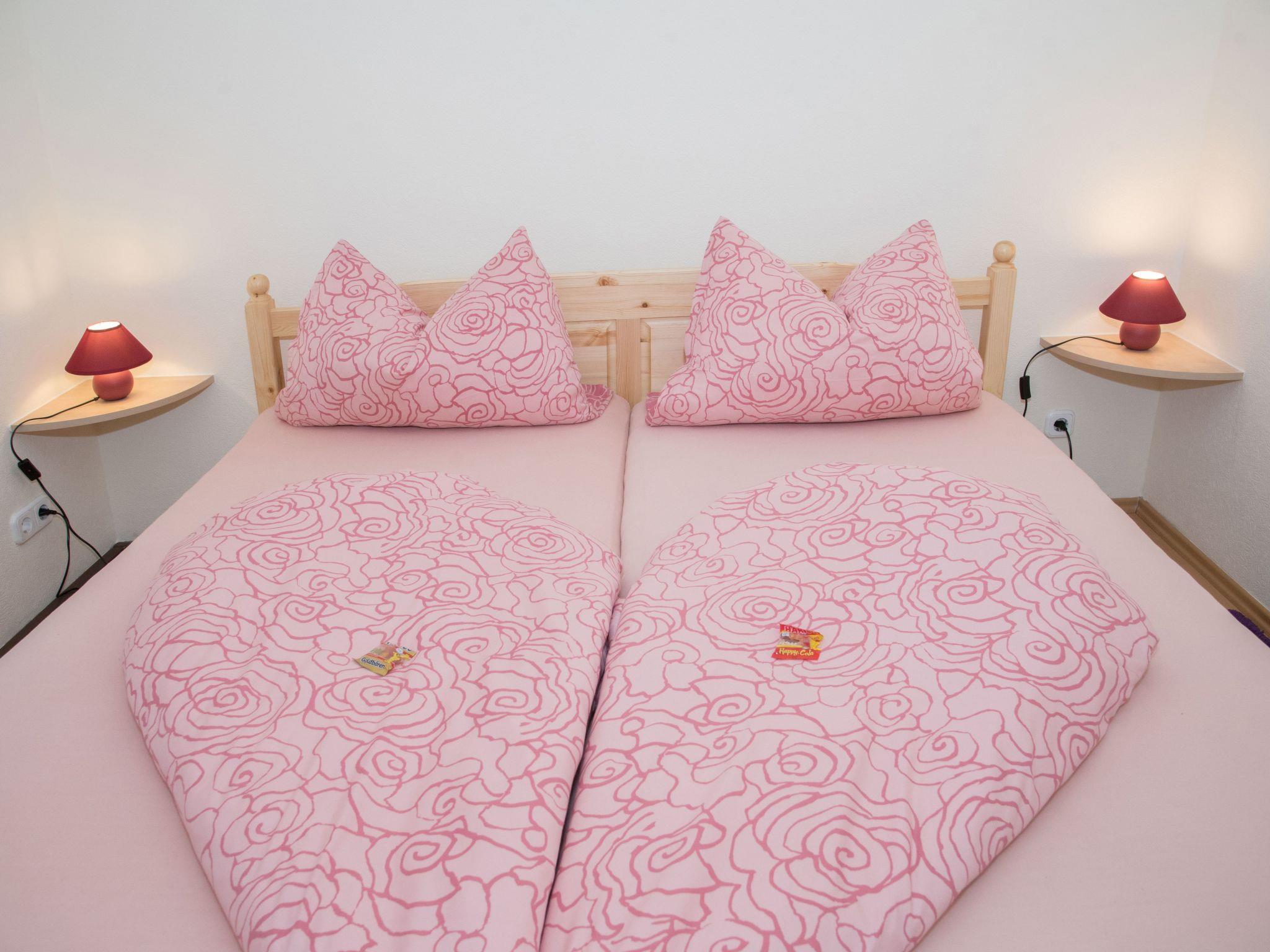 Upper floor flat: The upper floor flat has a large bedroom with a double bed and an extra bed. There is another bed in the living/dining area. This flat is ideal for a family of four.