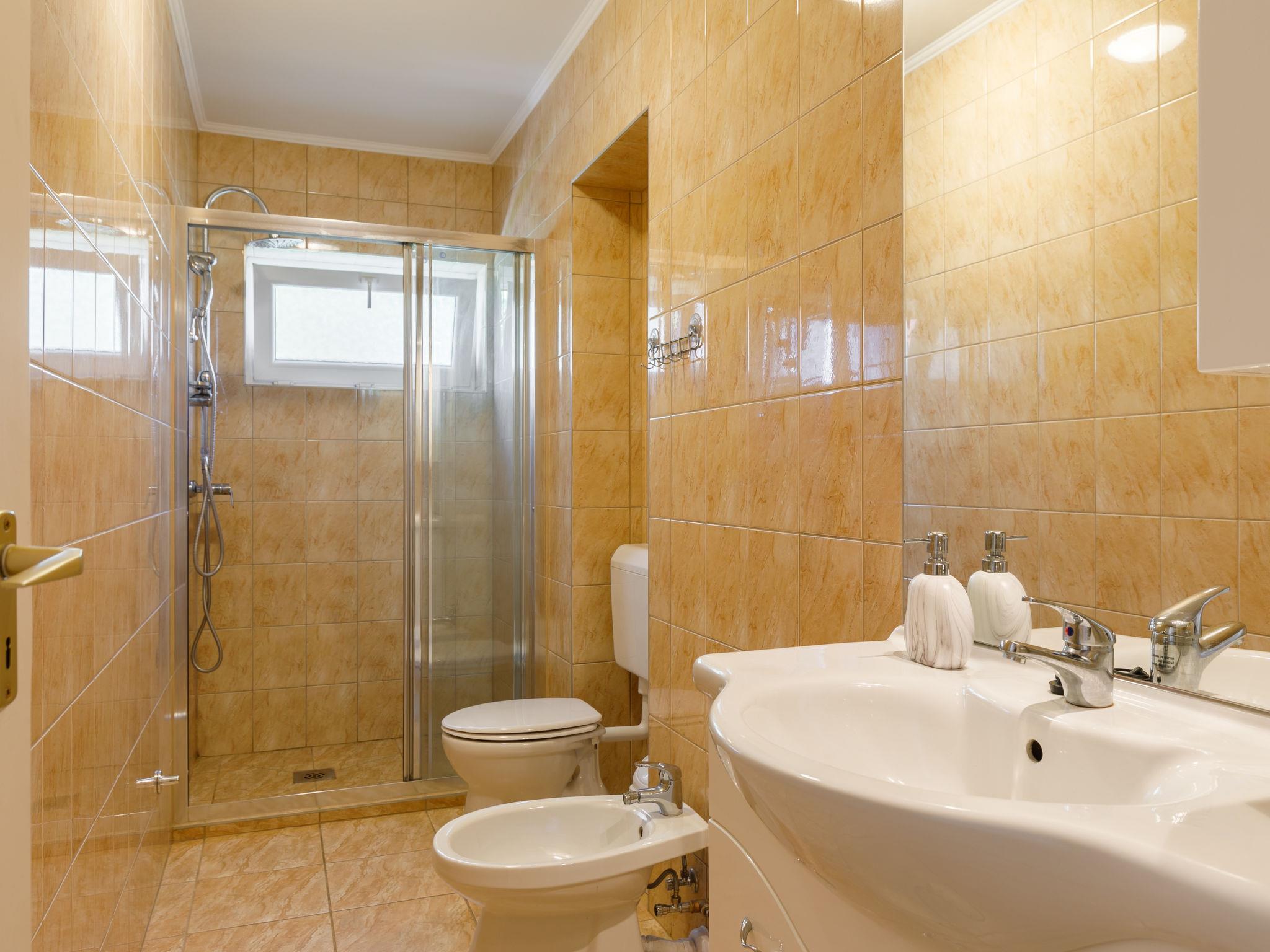 Living/dining room with satellite TV. Exit to the terrace. 1 room with 2 beds (90 cm, length 200 cm), air conditioning. Open kitchen (dishwasher, 4 ceramic glass hob hotplates, toaster, kettle, microwave, freezer, electric coffee machine). Shower/bidet/WC, sep. WC. No heating option. Upper floor: 1 room with 3 beds (90 cm, length 200 cm). 1 room with 1 french bed (180 cm, length 200 cm), air conditioning. Exit to the balcony. 1 room with 2 beds (90 cm, length 200 cm). Sep. WC, bath/shower/WC. Balcony 10 m2, terrace 15 m2. Terrace furniture, balcony furniture, barbecue, deck chairs (2). Facilities: Internet (WiFi, free). Parking (fenced 2 cars). MA19014450