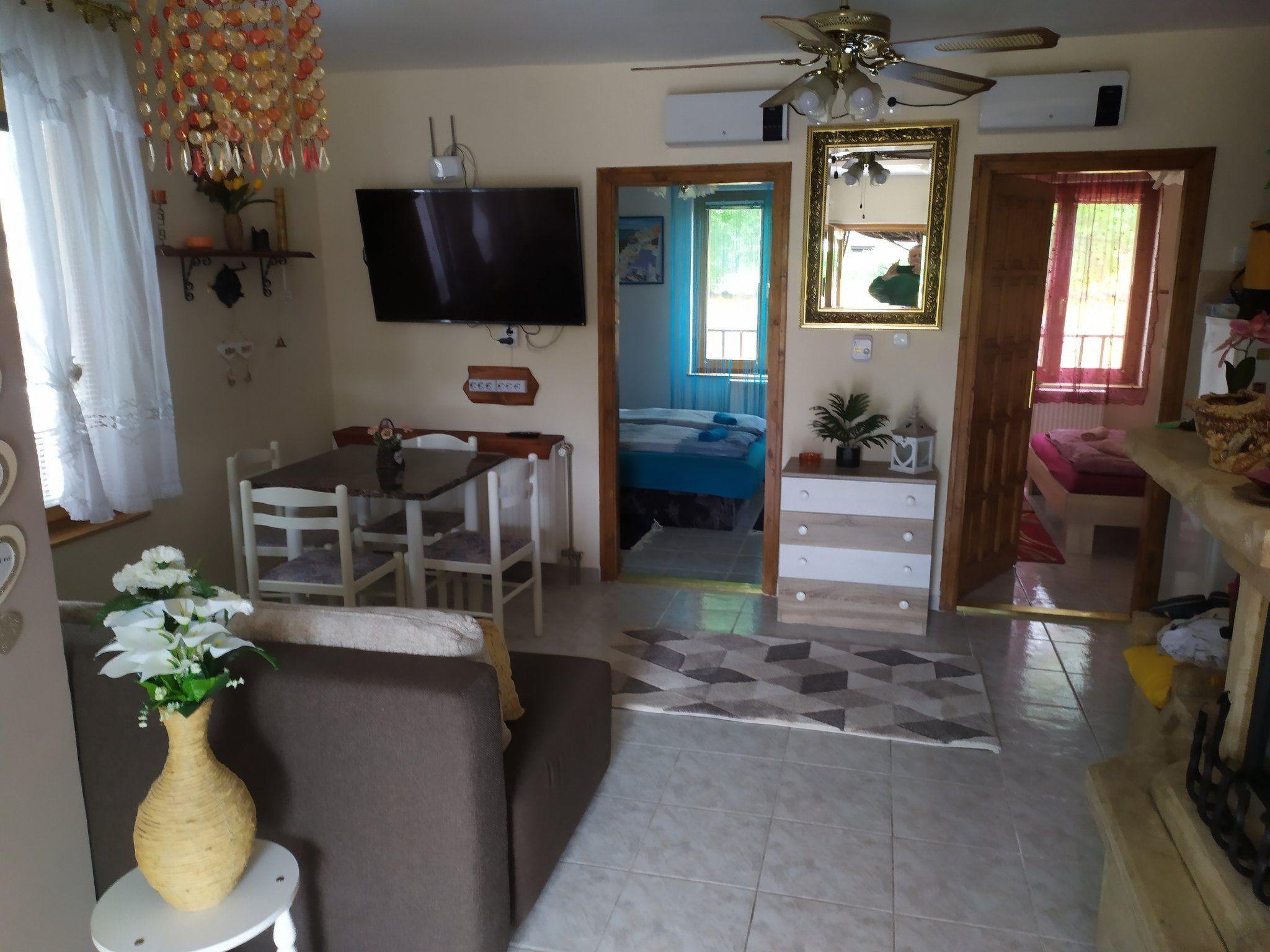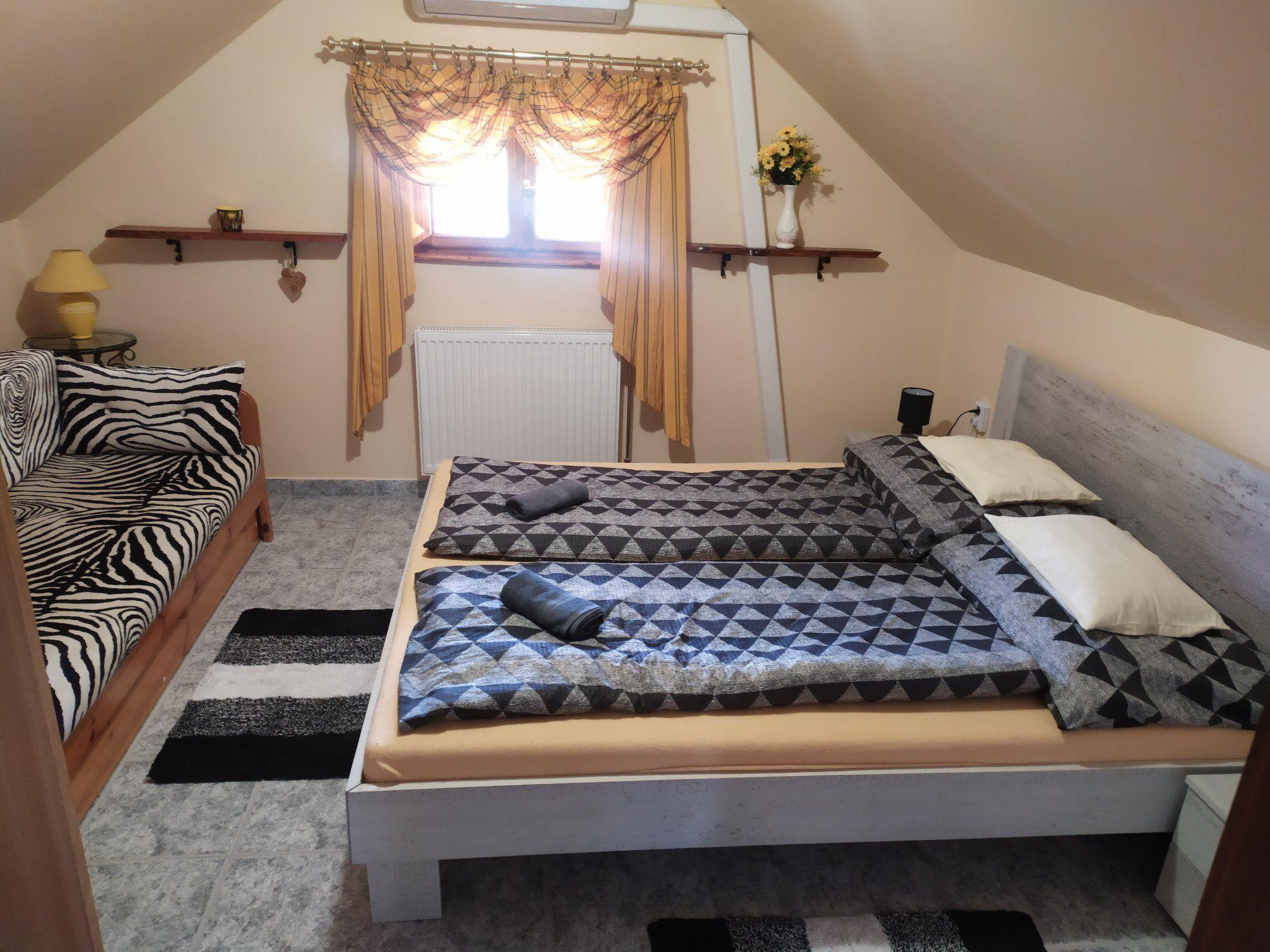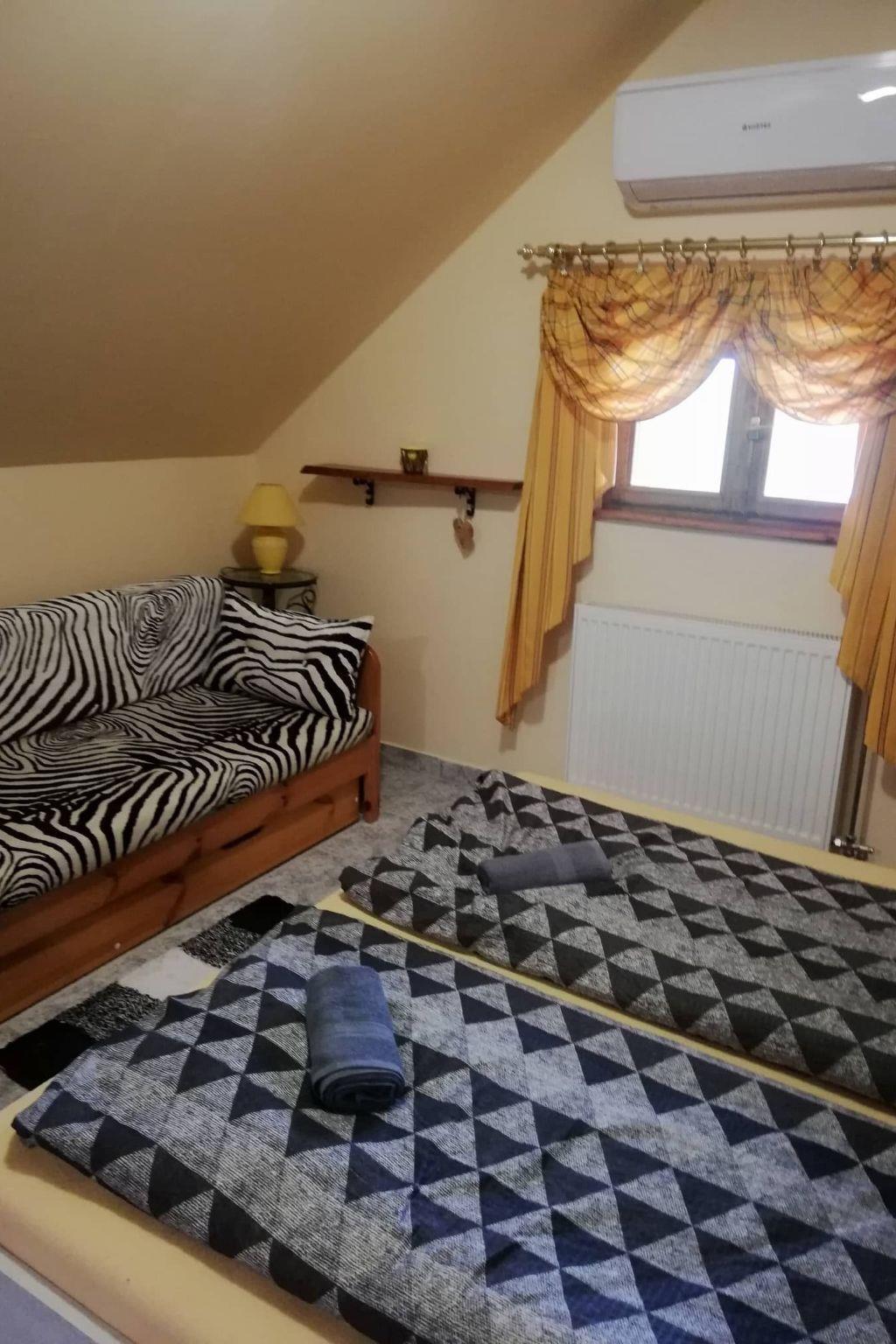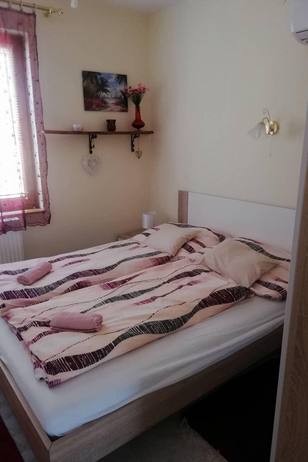 Location: Hungary, Lake Balaton, Balaton south shore, BalatonfenyvesNo. of persons: 16Living area: 300 m²Distances: Beach 700 m, shopping 200 m, restaurant 200 m, centre 600, railway station 600 m, bus stop 600 m. Ground floor: open spacious and nice combined living/dining room with sitting set, SAT-TV, W-LAN, with nice and well equipped kitchen and with sleeping possibility for 2 persons and with SAT-TV. 2 air-conditioned double rooms each with French beds. In the kitchen there is a gas cooker, 2 coffee machines, fridge, microwave, dishwasher, kettle, toaster etc. Bathroom with shower, separate WC. There is also a washing machine in the bathroom. Upstairs: open-plan spacious and beautiful combined living/dining room with sofa, W-LAN, with beautiful and well-equipped kitchen and with sleeping possibility for 2 persons and with SAT-TV. 2 air-conditioned double rooms each with French beds. The kitchen is equipped with a gas cooker, fridge and microwave. Bathroom with bathtub and bidet, separate WC. Attic: 2 air-conditioned double rooms each with French beds. Bathroom with small bathtub, separate WC. Balcony. Equipment: gas cooker, coffee machine, fridge, microwave, dishwasher, kettle, toaster. Washing machine. SAT-TV, W-LAN, Netflix (all available to guests at no extra charge). All bedrooms are air-conditioned. Terrace with garden furniture. Balcony. Gazebo with seating. Nice barbecue area. info: This new tasteful family house invites you to a relaxing holiday. Sophisticatedly furnished house for discerning guests in a sunny and idyllic location, in a quiet street. Enclosed, well-kept large garden plot for sole use. Owner does not live there. If you don't feel like eating out in one of the many good restaurants, you can also barbecue in the garden. Parking is available in the courtyard (3 cars). included: final cleaning, bed linen, water, gas and electricity. pets: not allowed.