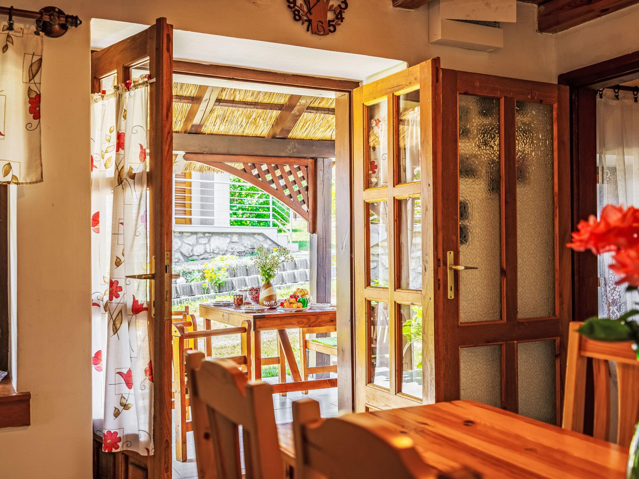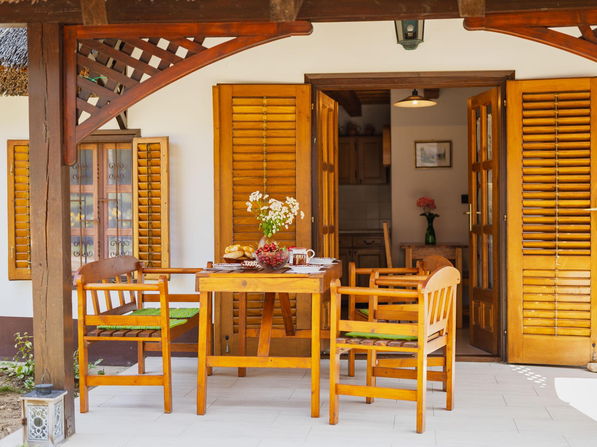 "Szijartó", 3-room house 60 m2. Practical furnishings: 1 double bedroom. 1 room with 2 beds. Kitchen-/living room (oven, 4 ceramic glass hob hotplates, toaster, kettle, microwave, freezer, electric coffee machine) with dining table, satellite TV and electric heater. Shower/WC. No heating option. Wooden floors. Terrace roofed. Terrace furniture, barbecue (portable), deck chairs (2). Facilities: baby cot. Internet (WiFi, free). Please note: non-smoking house. MA19010919