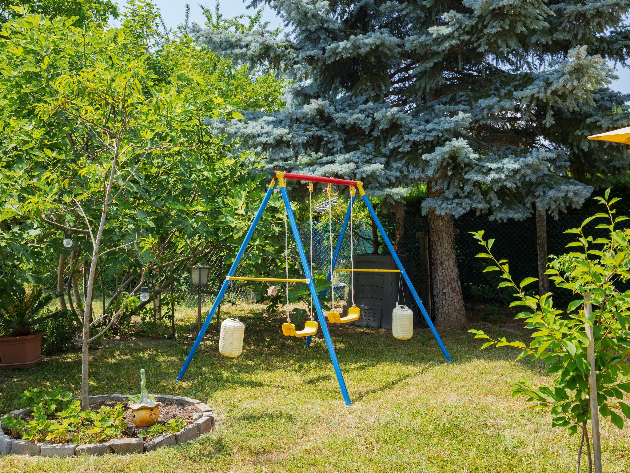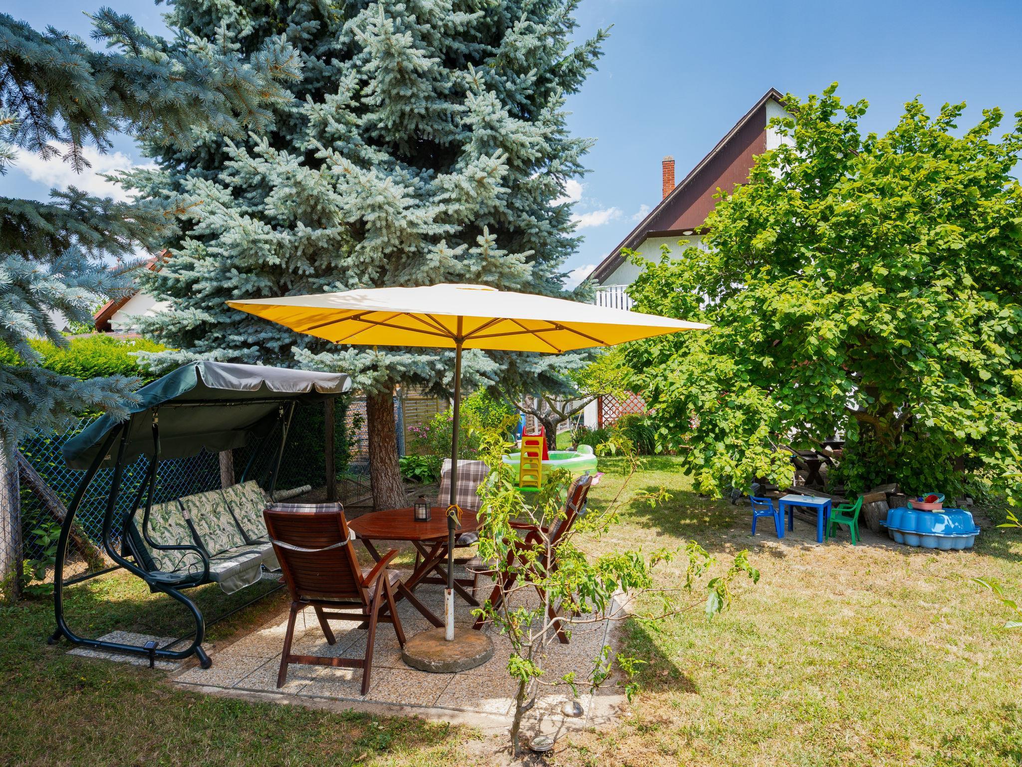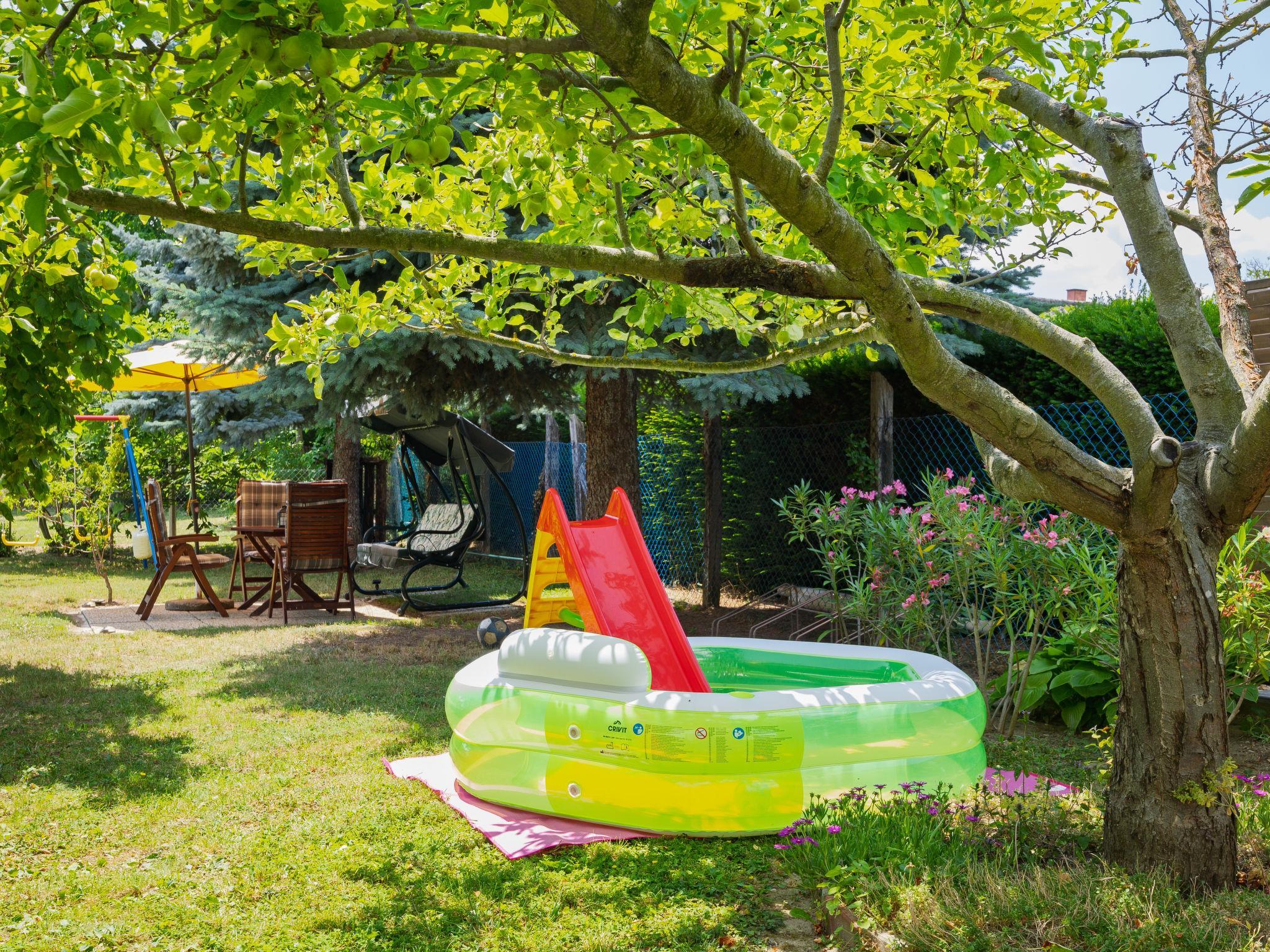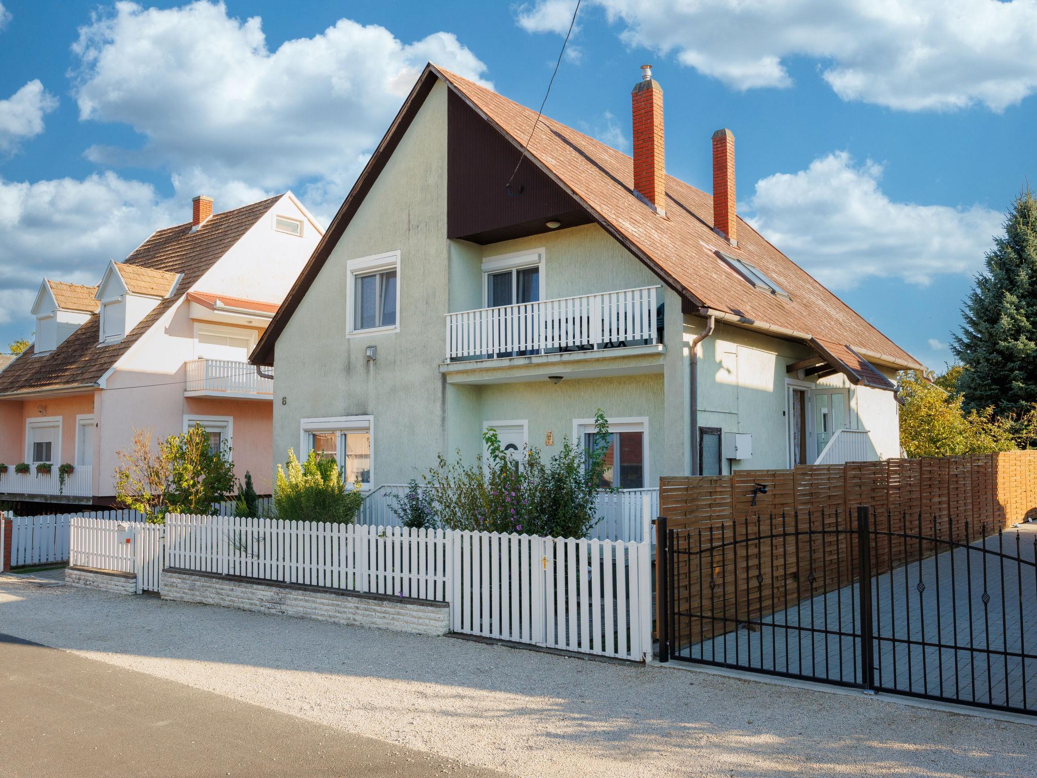 Balatonkeresztúr 19 km from Keszthely: Large 2-family house, 2 storeys. In the resort, in a quiet position in the residential district, 780 m from the lake, 650 m from the beach, in a cul-de-sac. For shared use: property (fenced). Private: garden. Pergola, garden furniture, barbecue (slide, sandbox). In the house: WiFi, central heating system. Parking (for 2 cars) on the premises. Grocery 400 m, supermarket 9 km, restaurant, bakery 400 m, bicycle rental 9 km, railway station "Balatonmáriafürdo" 1 km, thermal baths "Hévíz" 26 km. Golf course (18 hole) 36 km, tennis 8 km, riding stable 30 km, cycle lane 600 m, children's playground 270 m, fishing possibilities 750 m. Nearby attractions: Kis-Balaton Visitor Center 14 km, Festetics Nature House visitor center 25 km, Keszthely Giant Wheel 19 km, Festetics Castle 20 km, Kristinus Wine Estate 8 km, Demango Horse Riding 30 km. Please note: baby equipment on request. The owner lives in the same residence.