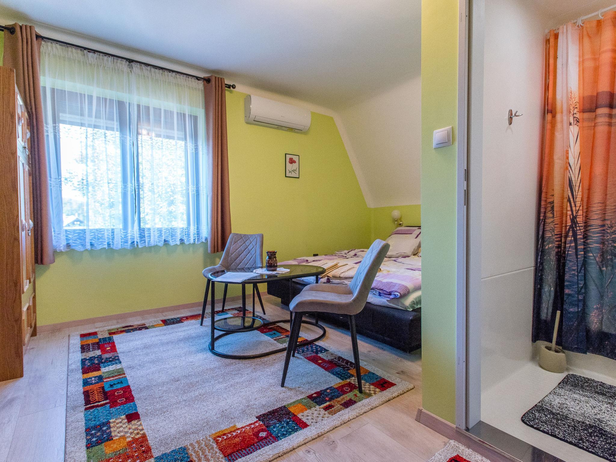 Balatonkeresztúr: Beautiful 2-family house, 2 storeys, built in 1991, renovated in 2022. In the resort, in a quiet position, 600 m from the lake. For shared use: property 980 m2 (fenced), well-kept garden with lawn and flowers. Private: swimming pool angular (8 x 4 m, 32 m2, depth 140 cm, seasonal availability: 15.May. - 15.Sep.) with shutter cover. Outdoor shower, barbecue. In the house: WiFi, air conditioning. Grocery, restaurant 500 m, grass beach 600 m. Please note: the owner lives in the same residence.